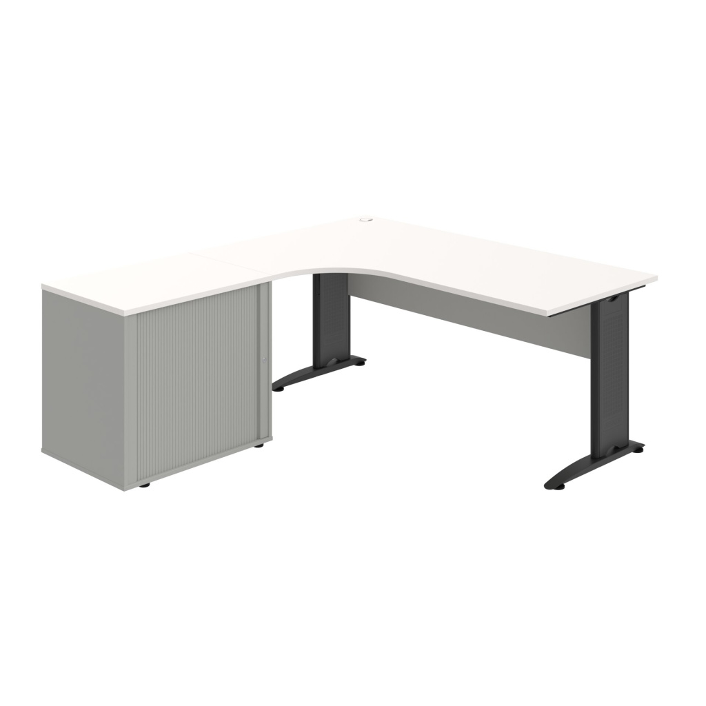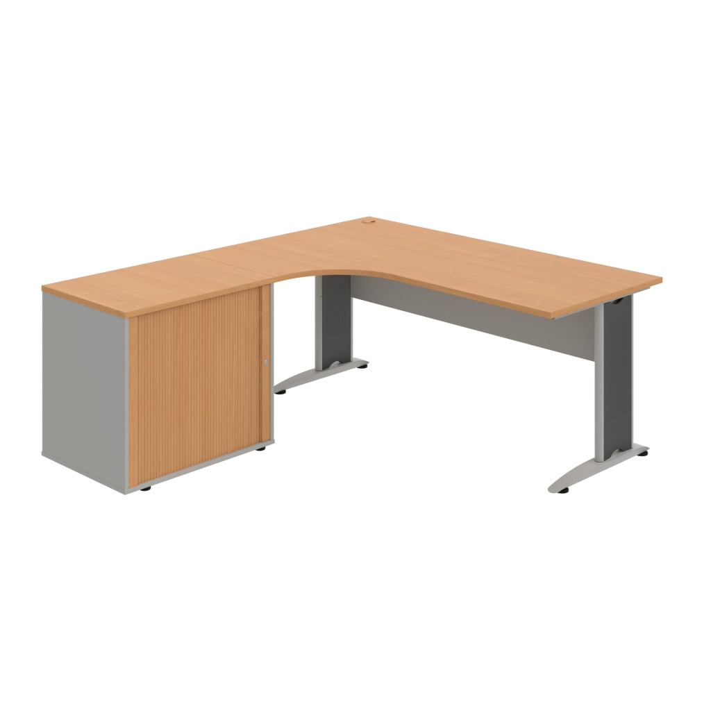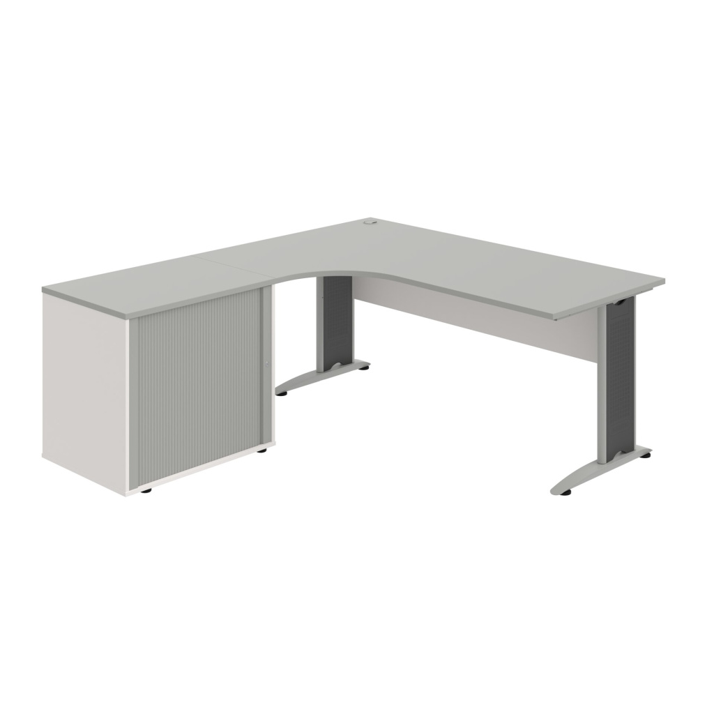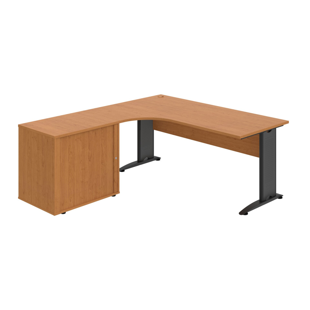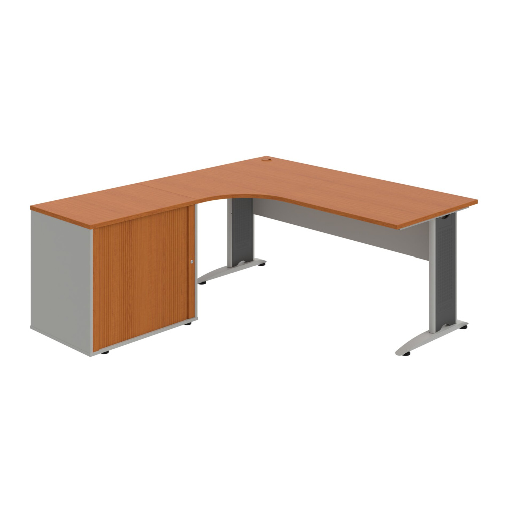 Stůl rohový pravý se skříňkou Hobis Cross CE 1800 HR P, šířka 180 cm, výška 75,5 cm, hloubka 200 cm, nohy osazeny rektifikací. 1x kabelová průchodka, příchytky...