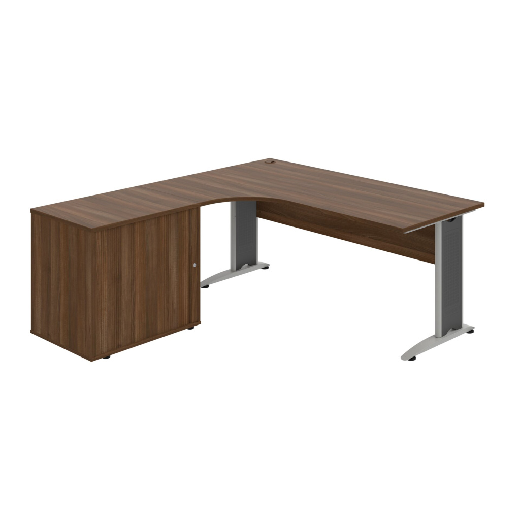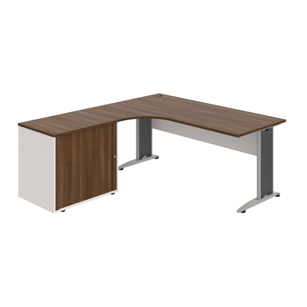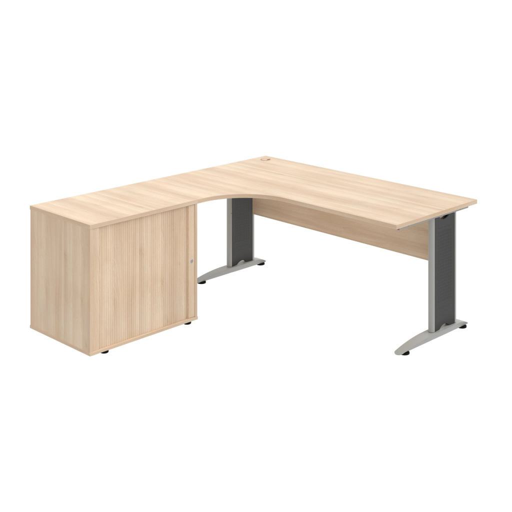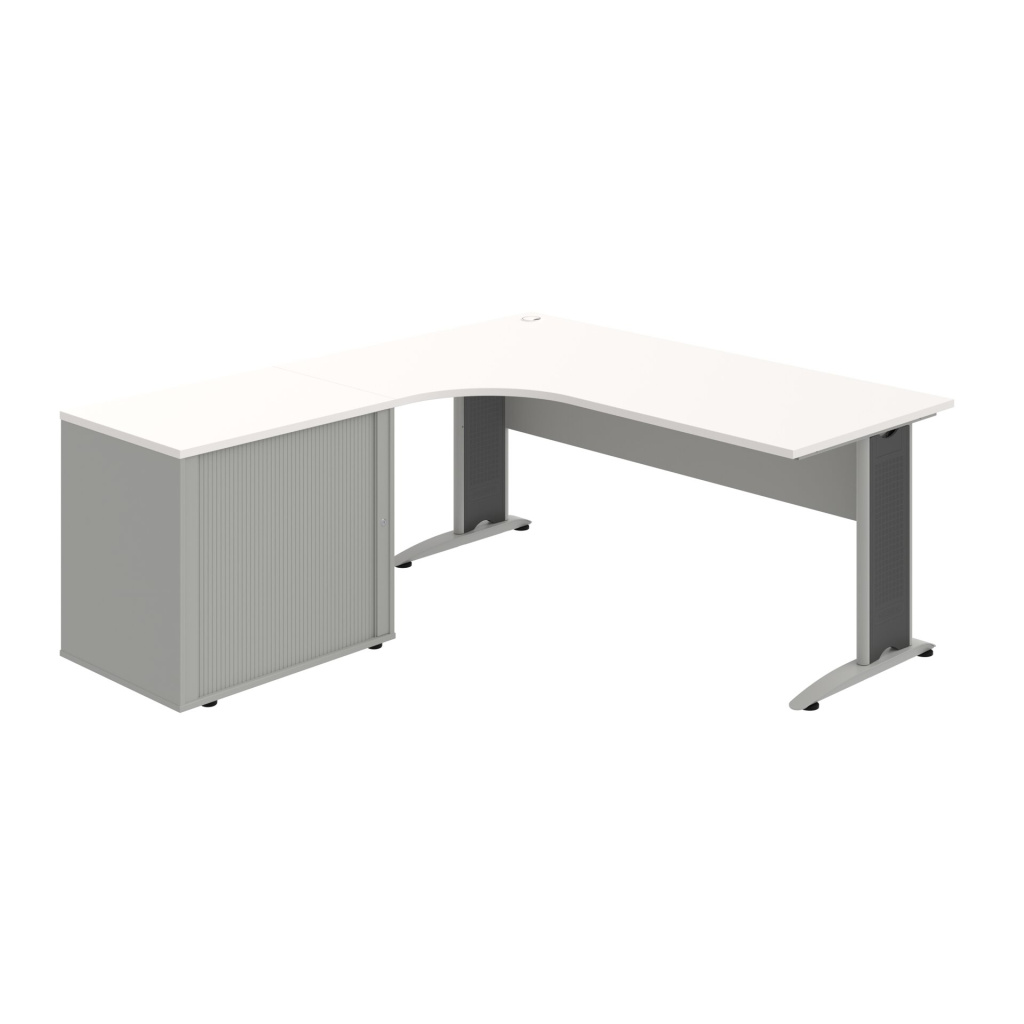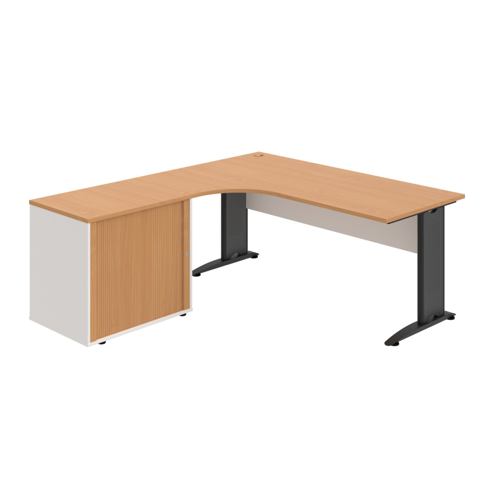 Stůl rohový pravý se skříňkou Hobis Cross CE 1800 HR P, šířka 180 cm, výška 75,5 cm, hloubka 200 cm, nohy osazeny rektifikací. 1x kabelová průchodka, příchytky...