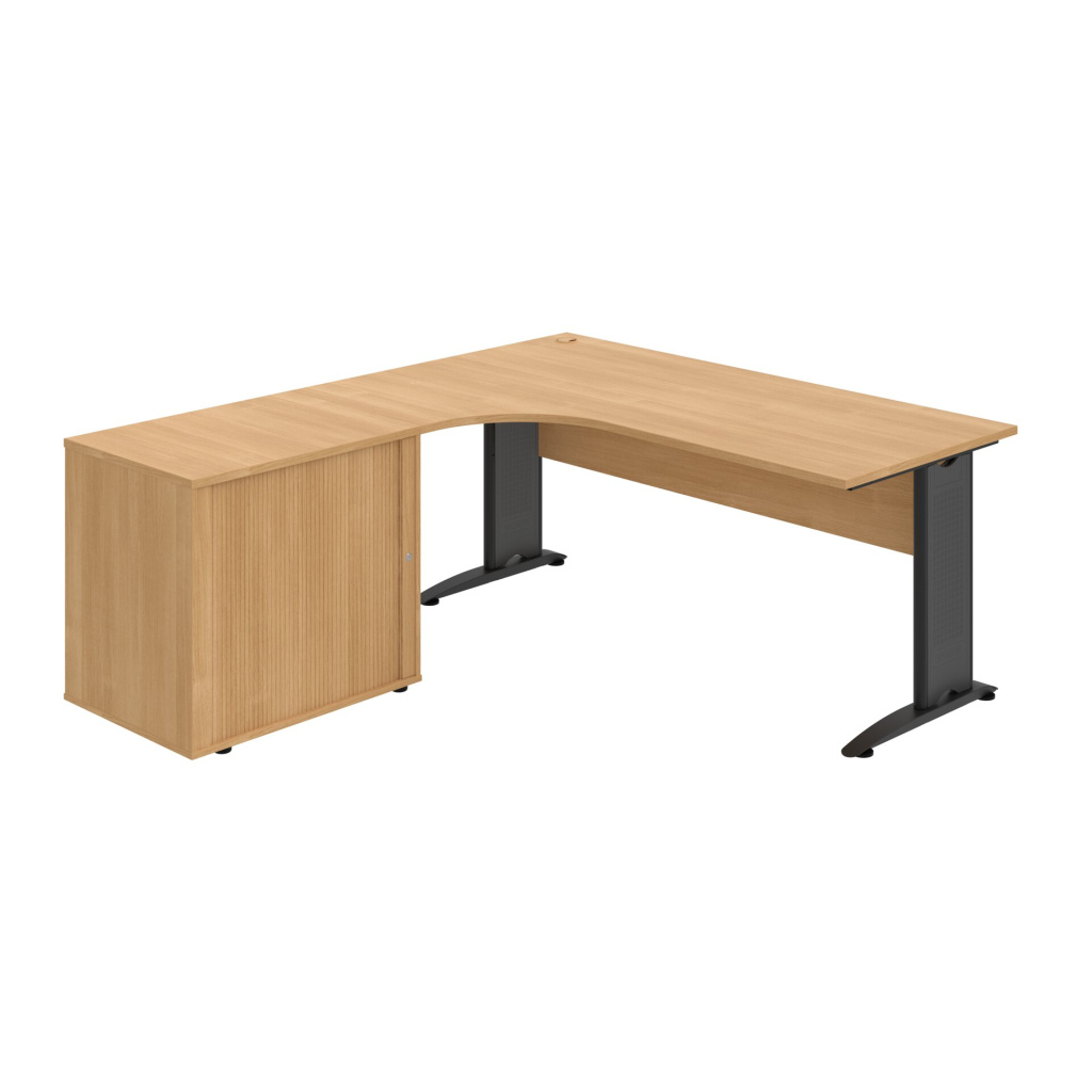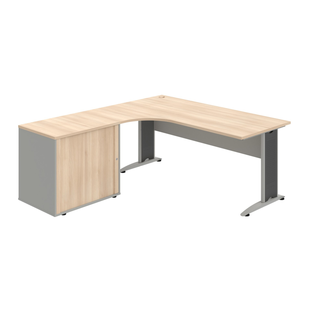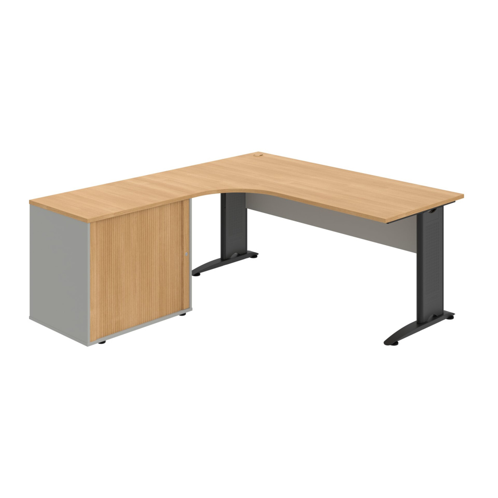 Stůl rohový pravý se skříňkou Hobis Cross CE 1800 60 H P, šířka 180 cm, výška 75,5 cm, hloubka 200 cm, nohy osazeny rektifikací. 1x kabelová průchodka, příchytky...