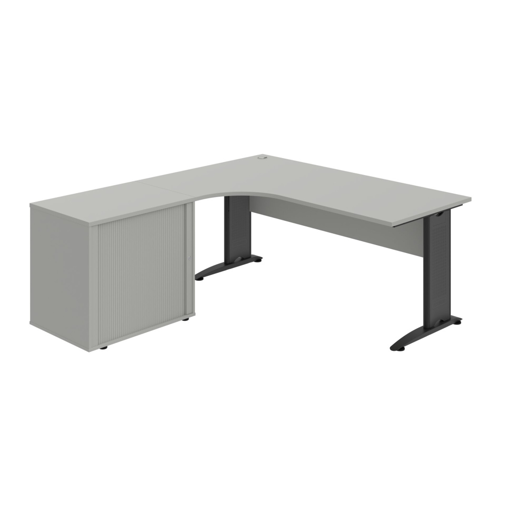 Stůl rohový pravý se skříňkou Hobis Gate GE 1800 60 HR P, šířka 180 cm, výška 75,5 cm, hloubka 200 cm, nohy osazeny rektifikací. 1x kabelová průchodka, příchytky...