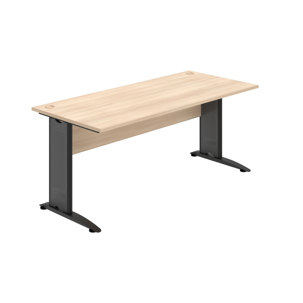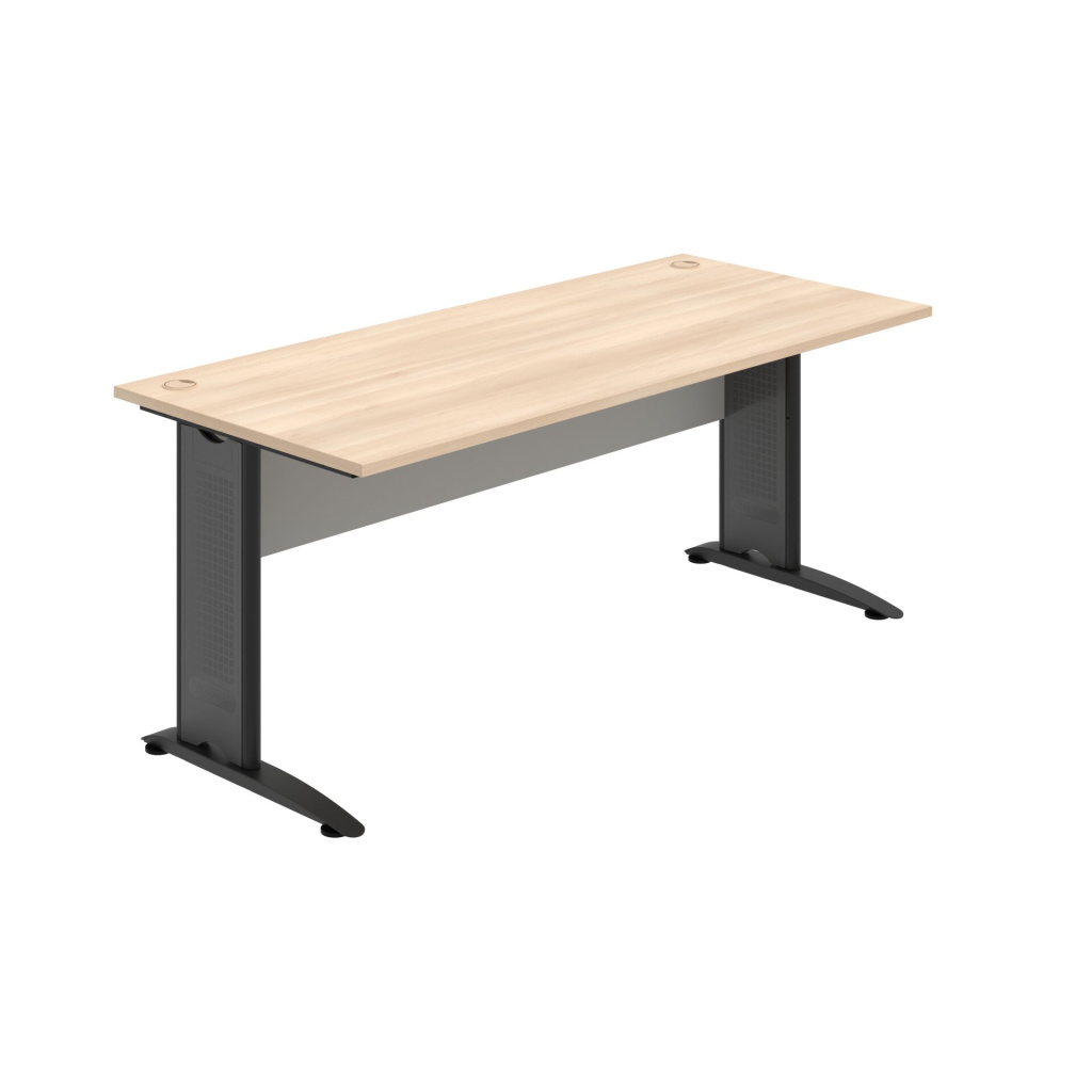 Pracovní deska stolu Hobis Cross CS 1800 je vyrobena z kvalitní laminované dřevotřísky tloušťky 25 mm. Deska je po celém obvodě opatřena 2 mm silnou ABS hranou, která ji účinně chrání před mechanickým poškozením a opotřebením. Stolová deska se zespoda po celé délce podporována svislou deskou - trnoží, takže je možné desku rovnoměrně zatížit až na 100 kg.