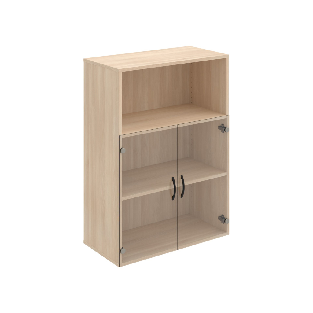 Skříň Hobis Drive D 3 80 05 je uzavíratelná celoskleněnými dveřmi. Díky nim je obsah skříně vidět a zároveň se na něj nepráší. Dveře jsou osazeny kvalitním kováním Blum s doživotní zárukou. Tiché zavírání zajišťují tlumící čočky. Z praktických důvodů nedoporučujeme skříně s celoskleněnými dvířky stavět přímo na podlahu, kde je zvýšené riziko rozbití dvířek. Doporučujeme je spíše využít v horní části skříňové sestavy.