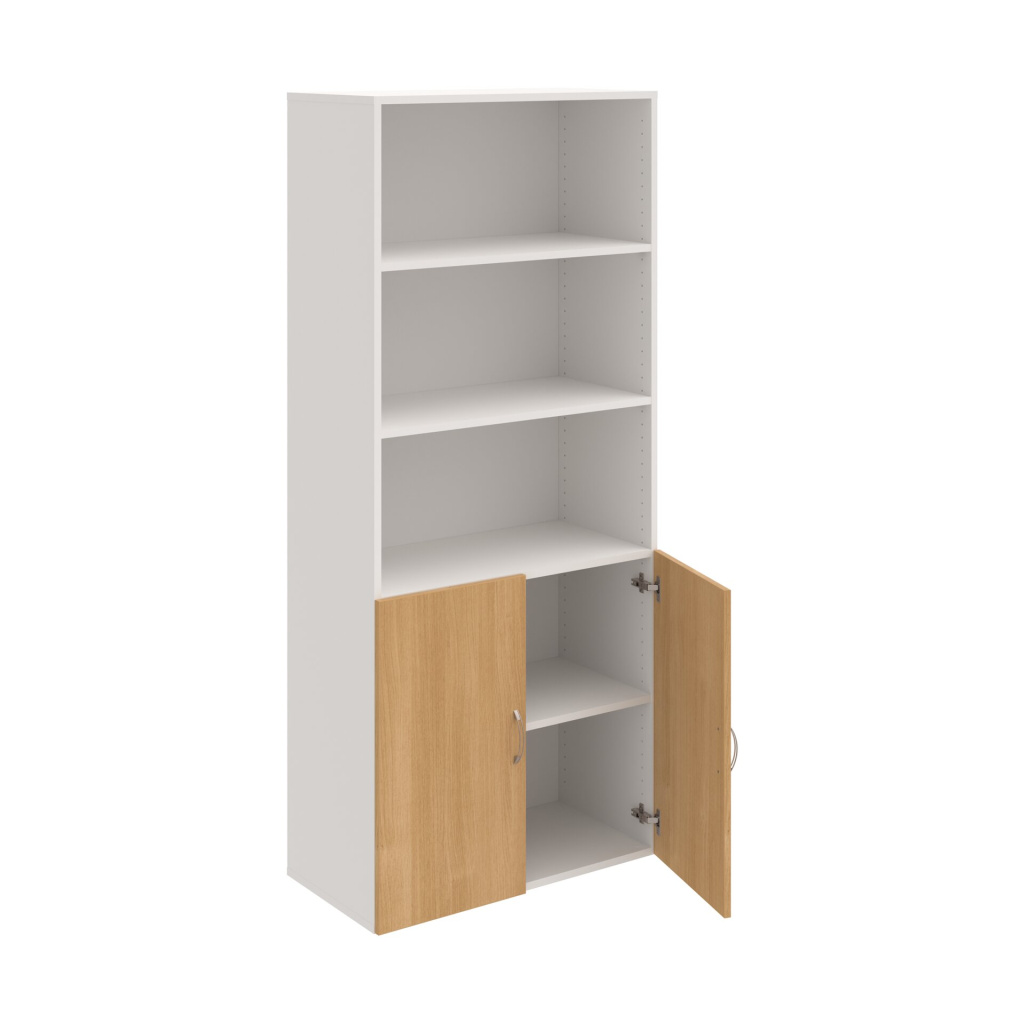 Skříň Hobis Drive D 5 80 03 je vybavena policemi s 18 mm. Každou polici tak můžete rovnoměrně zatížit hmostností až 35 kg. Kování polic zajišťuje pevné spojení mezi policí a korpusem a zabraňuje náhodnému vysunutí police. Základní výška úložného prostoru mezi policemi je přizpůsobena na výšku standardního kancelářského šanonu. V případě potřeby lze jednoduše polohu polic změnit dle individuálních potřeb. Pokud vám standardní počet polic nestačí, je možné další police dokoupit. Tyto a další doplňky naleznete v kategorii Příslušenství a doplňky