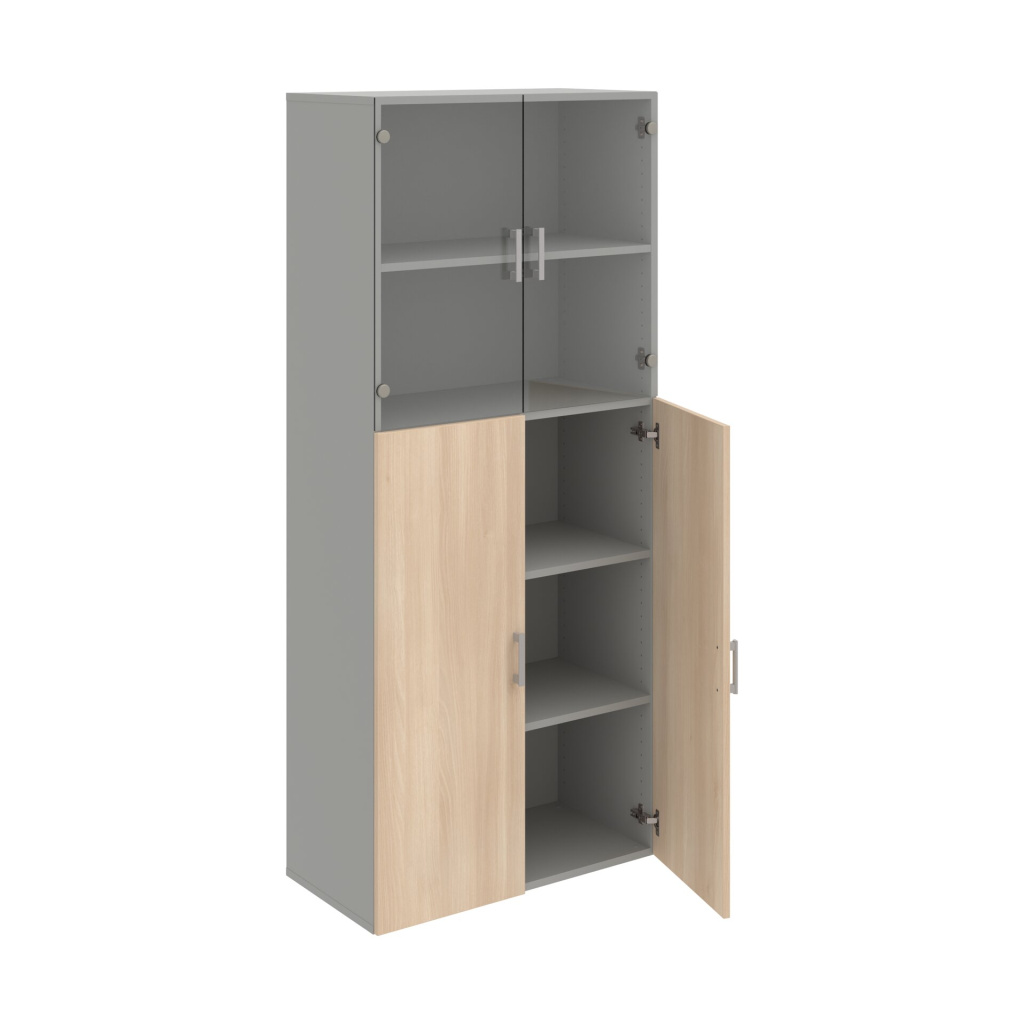 Skříň Hobis Drive D 5 80 08 je uzavíratelná plnými a celoskleněnými dveřmi. Plné dveře jsou po obvodě opatřeny 2mm ABS hranou, která je chrání před mechanickým poškozením a jsou osazeny kvalitním kováním Blum s doživotní zárukou. Tiché zavírání zajišťují tlumící čočky.