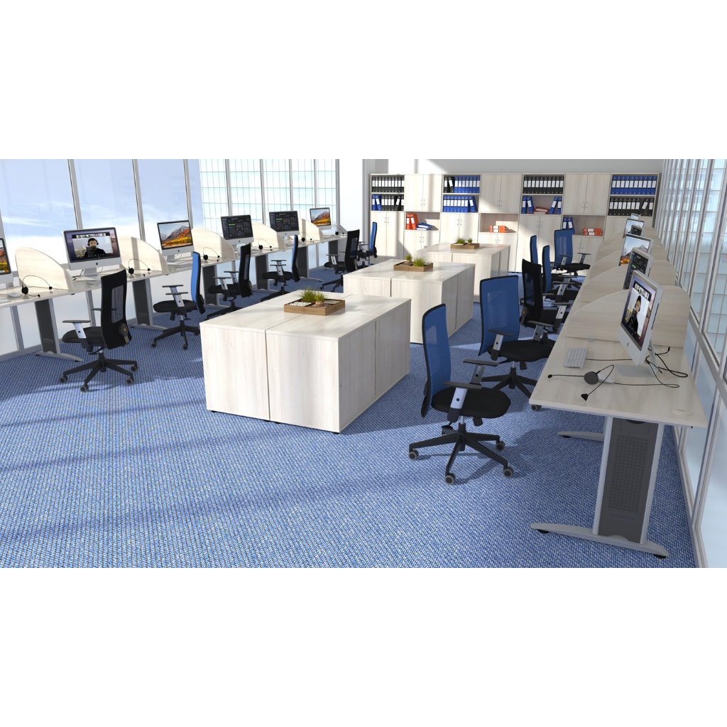 Podnož kancelářského stolu Hobis FE 60 P tvoří kovové nohy spojené flexibilním kabelovým kanálem. Kabelový kanál podepírá desku po celé délce stolu a výrazně zvyšuje pevnost celého stolu. Nemáte ideálně rovnou podlahu? Nevadí. Nohy jsou vybaveny výškově stavitelnou rektifikací, která lze vyštroubovat až o 15 mm. Stůl si tak snadno vyladíte do perfektní roviny.