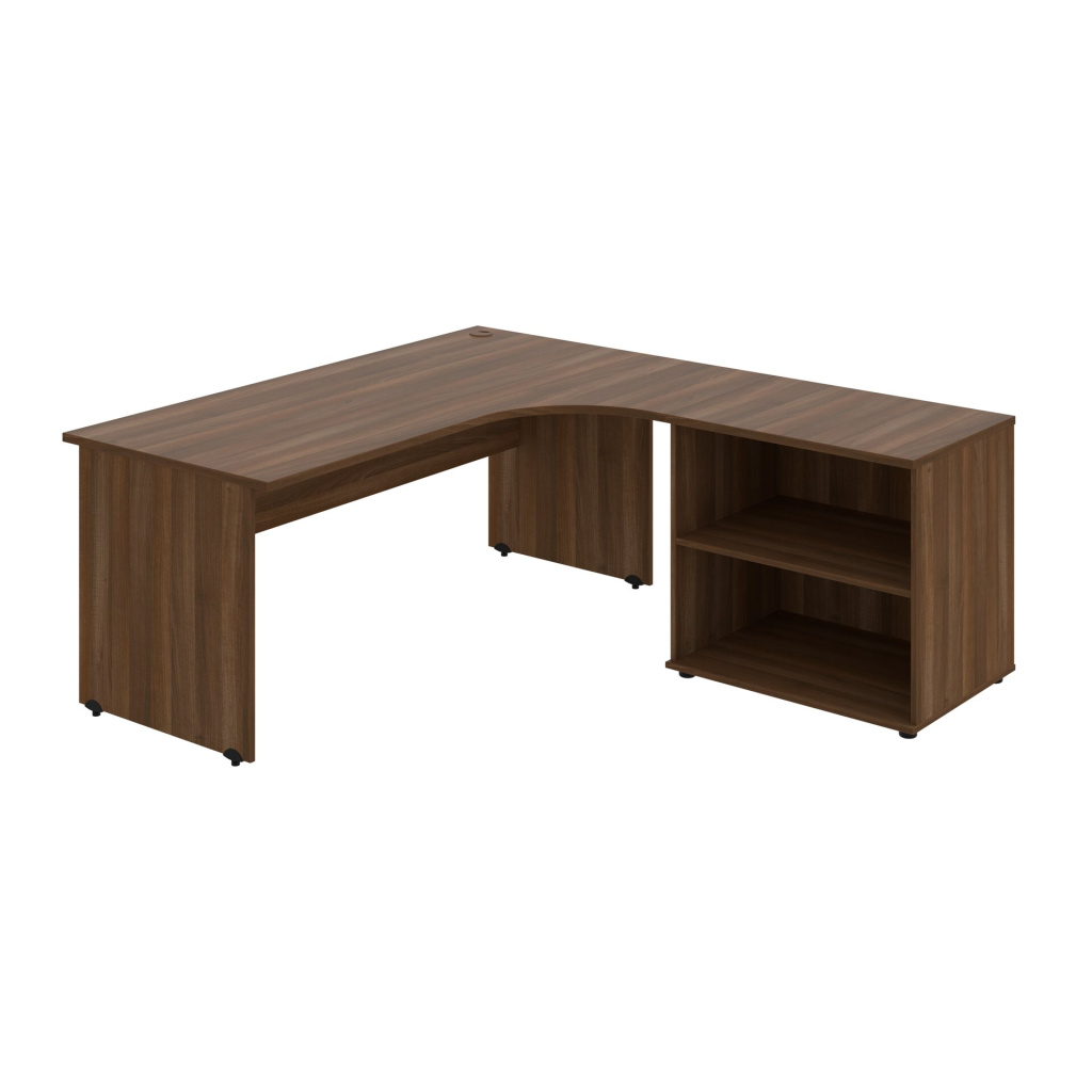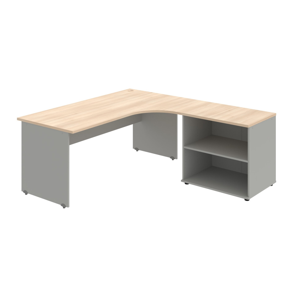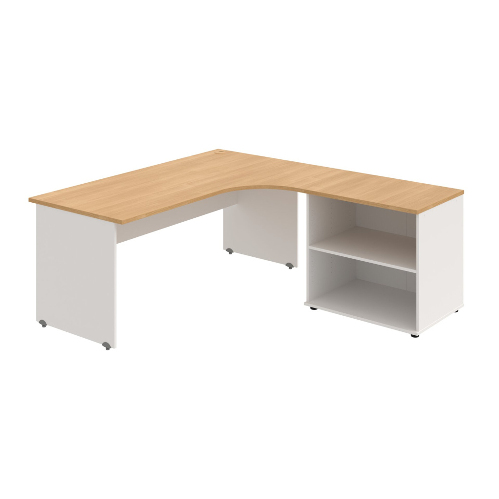 Stůl rohový pravý se skříňkou Hobis Gate GE 1800 60 H P, šířka 180 cm, výška 75,5 cm, hloubka 200 cm, nohy osazeny rektifikací. 1x kabelová průchodka, příchytky...