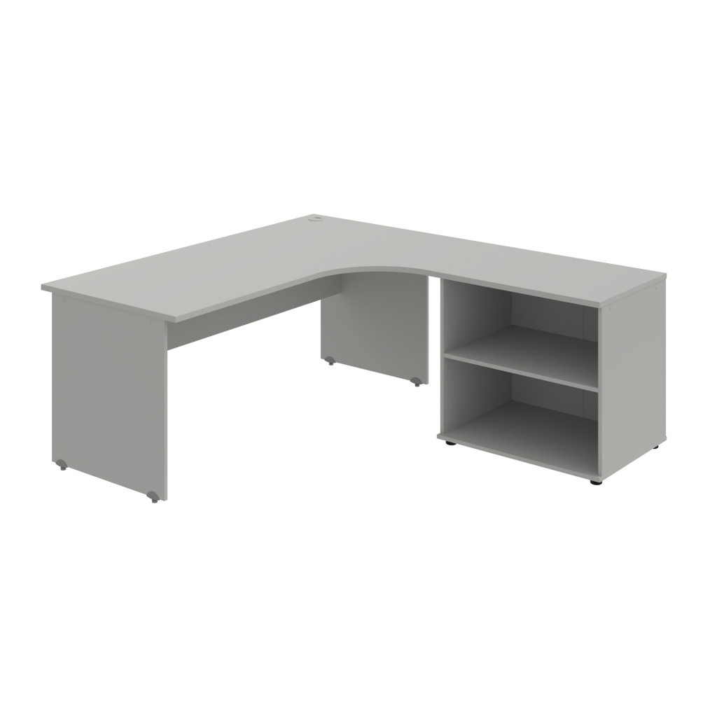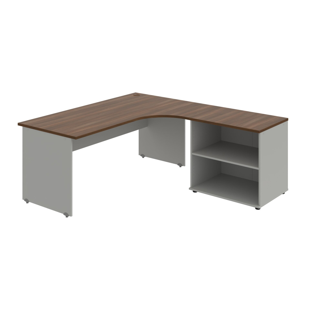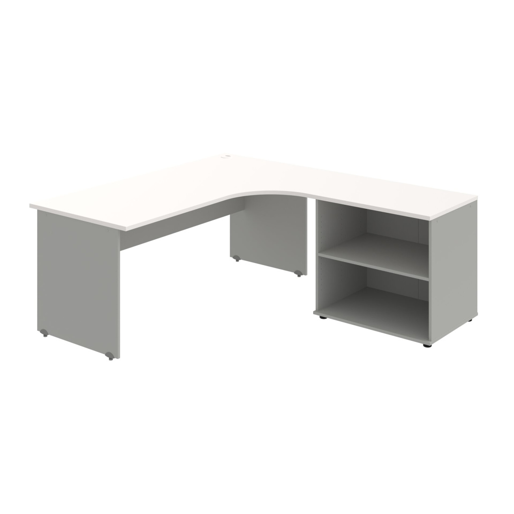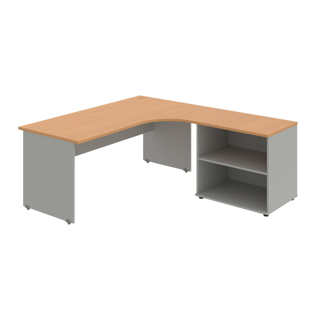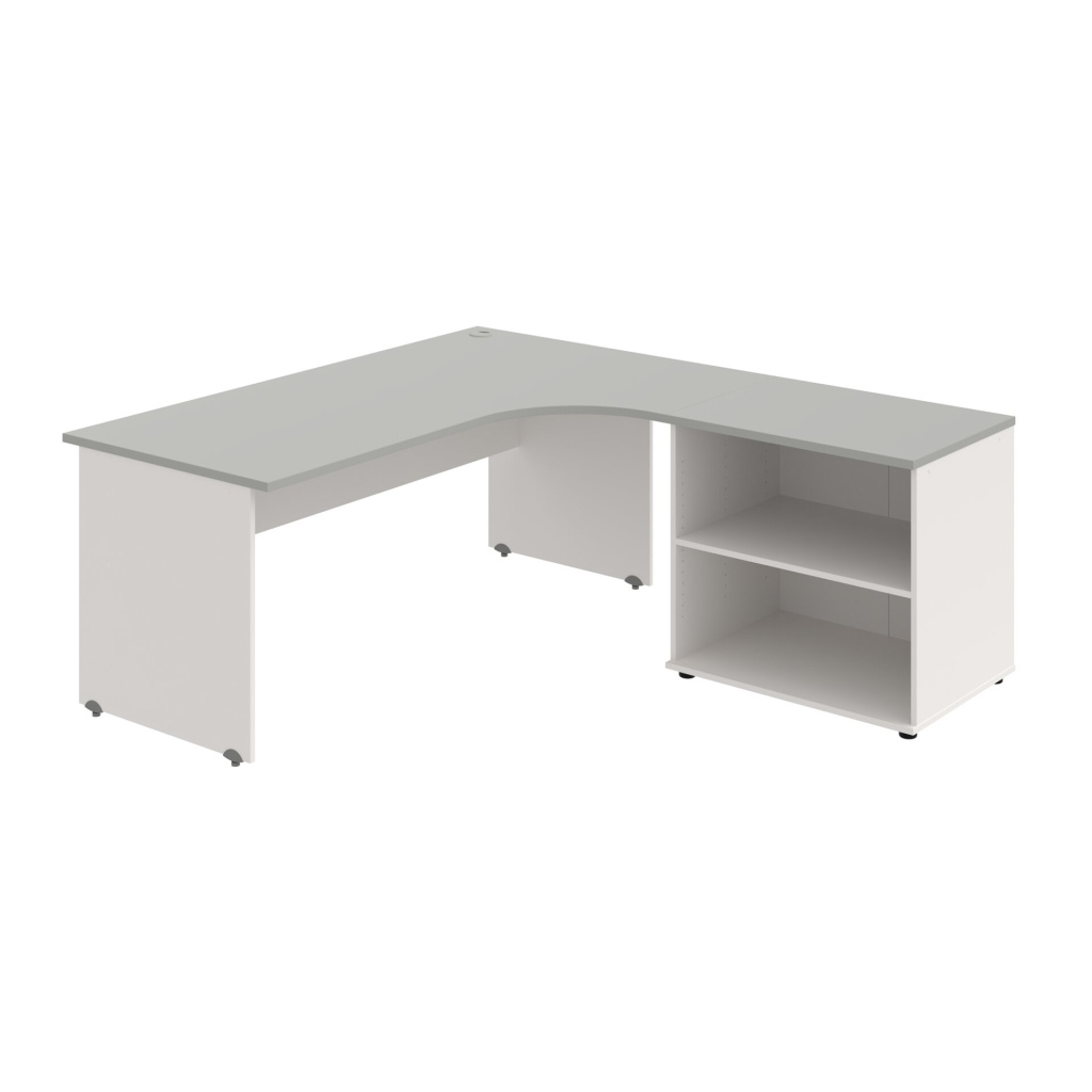 Stůl rohový pravý se skříňkou Hobis Gate GE 1800 60 HR P, šířka 180 cm, výška 75,5 cm, hloubka 200 cm, nohy osazeny rektifikací. 1x kabelová průchodka, příchytky...