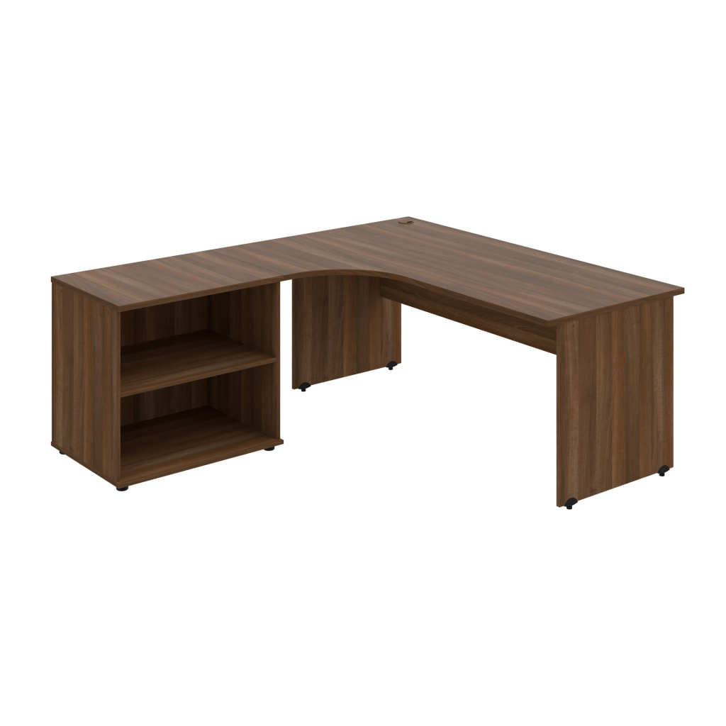Stůl rohový levý se skříňkou Hobis Cross CE 1800 60 HR L, šířka 180 cm, výška 75,5 cm, hloubka 200 cm, nohy osazeny rektifikací. 1x kabelová průchodka, příchytky...