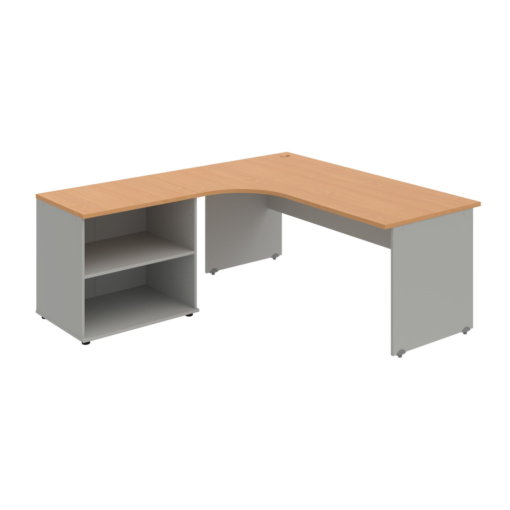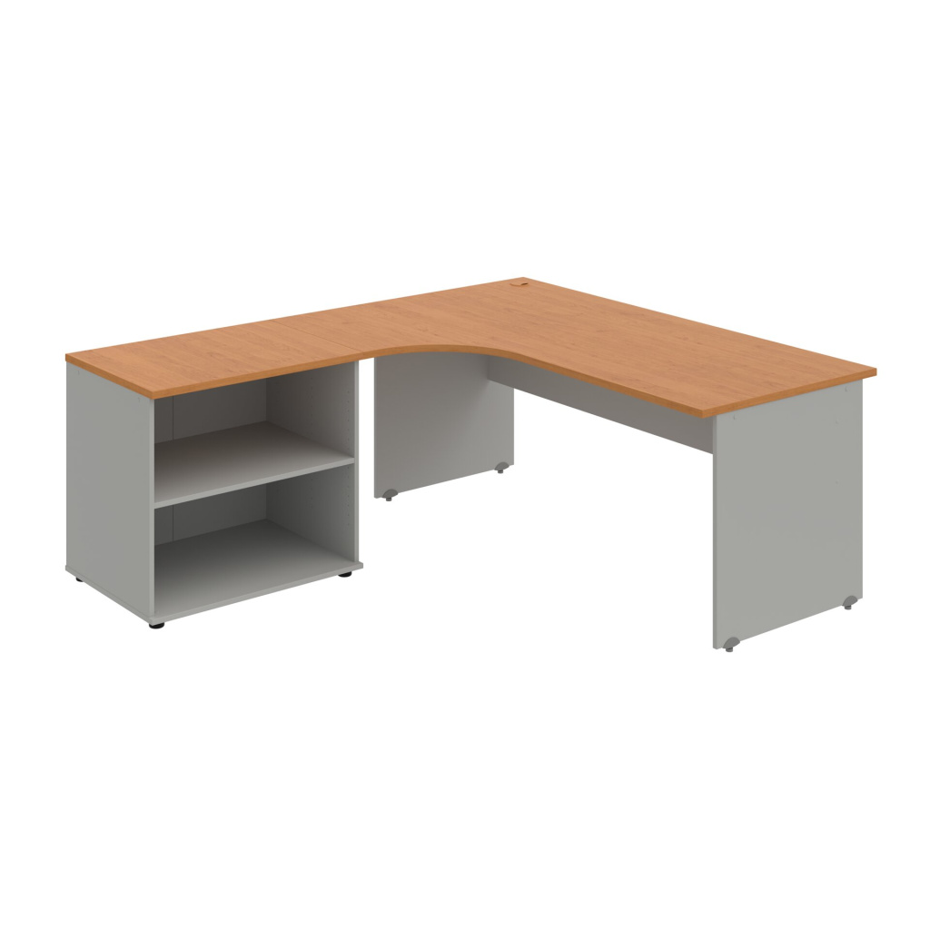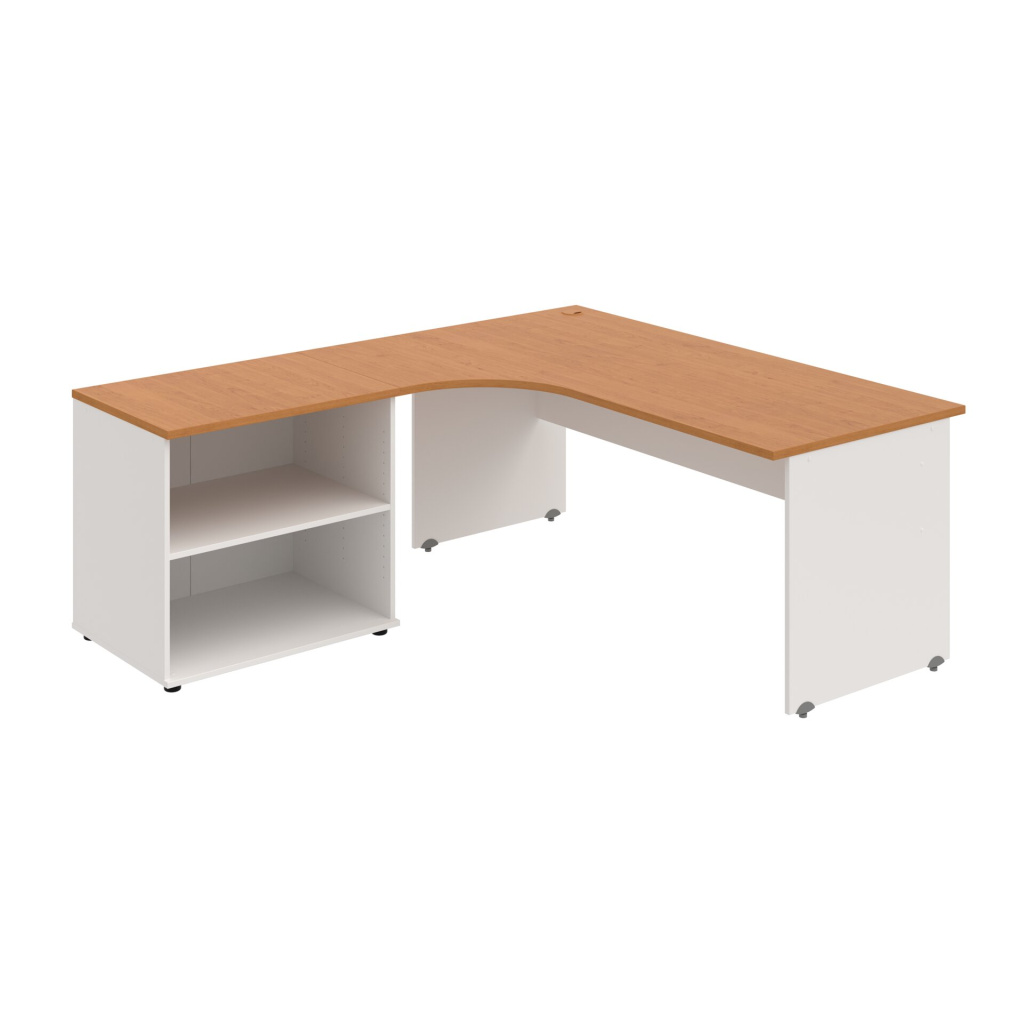Stůl rohový pravý se skříňkou Hobis Gate GE 1800 60 HR P, šířka 180 cm, výška 75,5 cm, hloubka 200 cm, nohy osazeny rektifikací. 1x kabelová průchodka, příchytky...