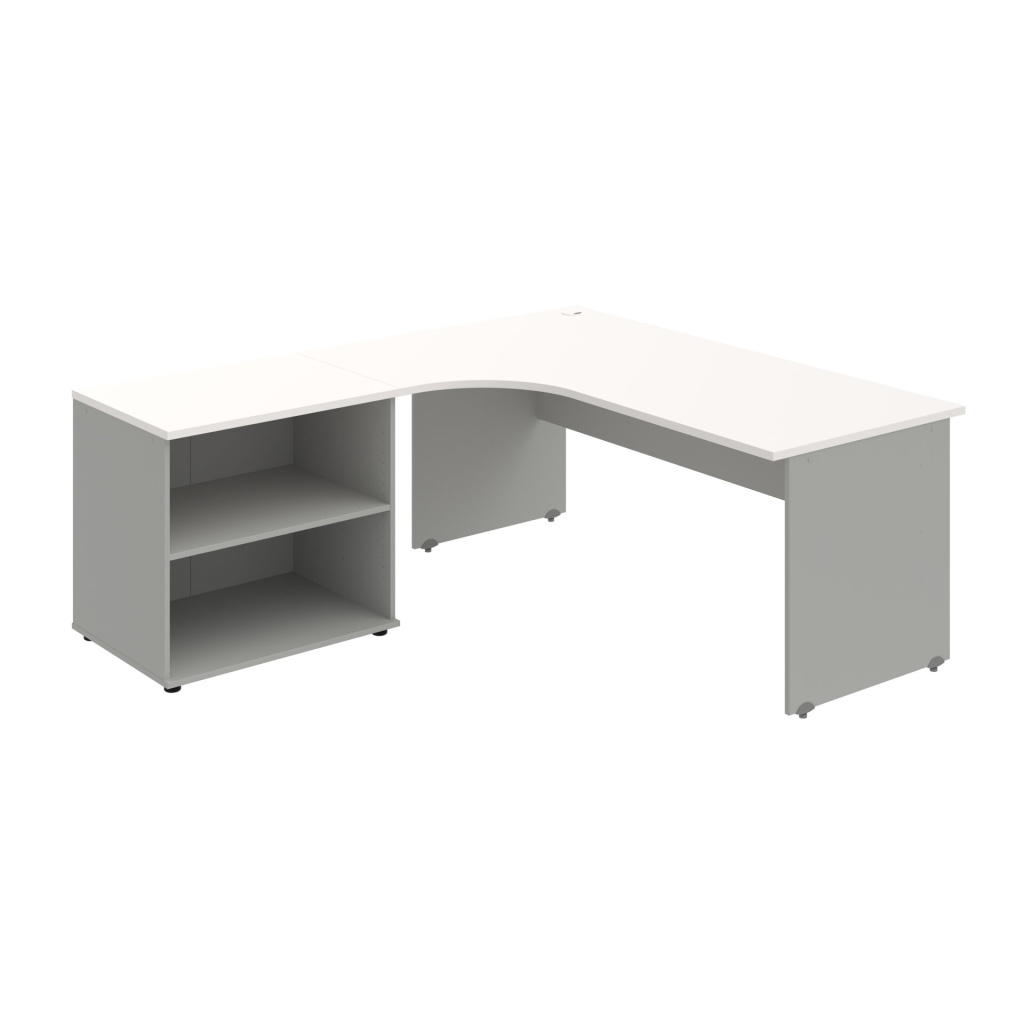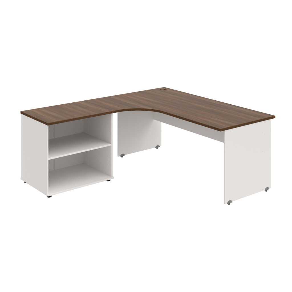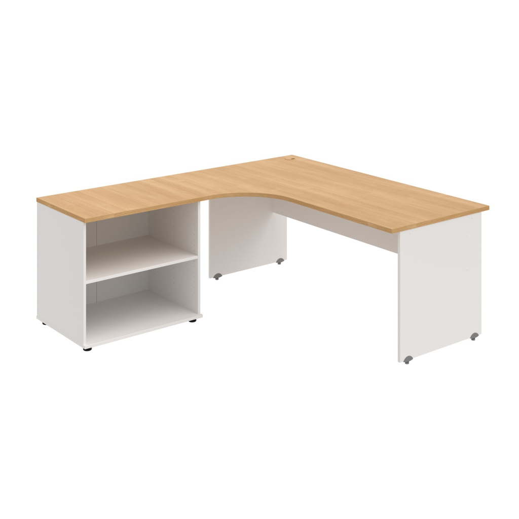 Stůl rohový pravý se skříňkou Hobis Gate GE 1800 60 HR P, šířka 180 cm, výška 75,5 cm, hloubka 200 cm, nohy osazeny rektifikací. 1x kabelová průchodka, příchytky...