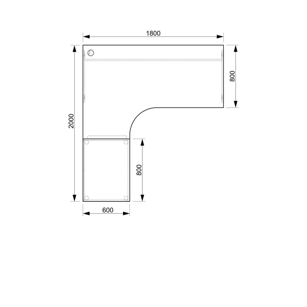 Stůl rohový levý se skříňkou Hobis Cross CE 1800 60 H L, šířka 180 cm, výška 75,5 cm, hloubka 200 cm, nohy osazeny rektifikací. 1x kabelová průchodka, příchytky...