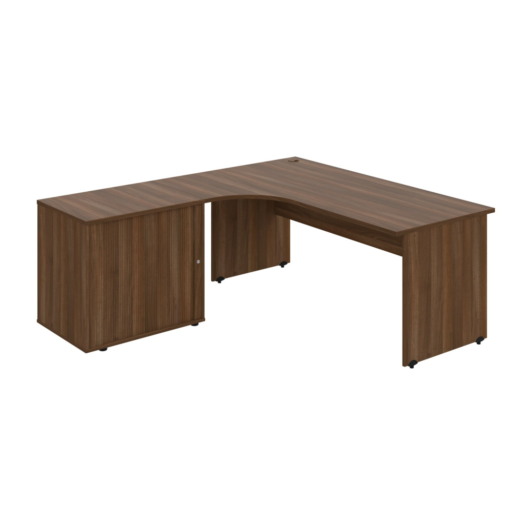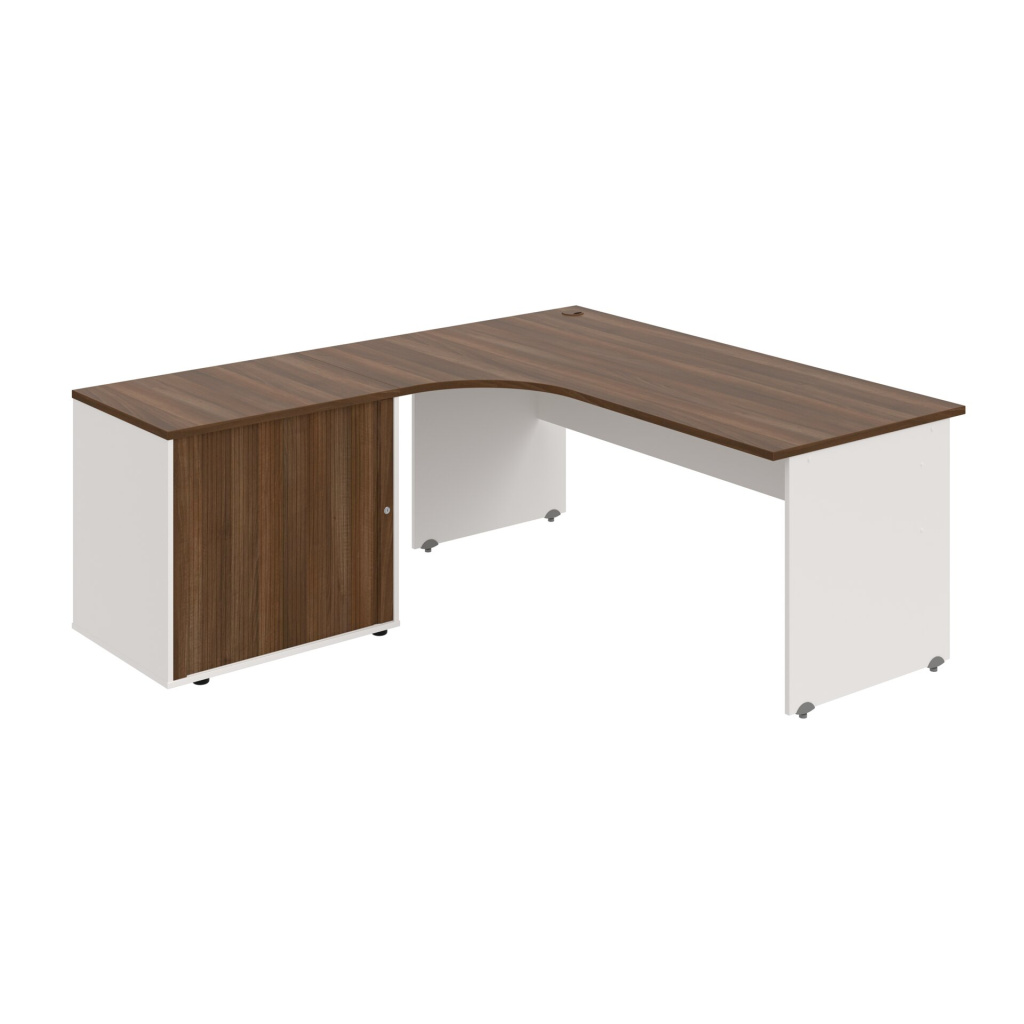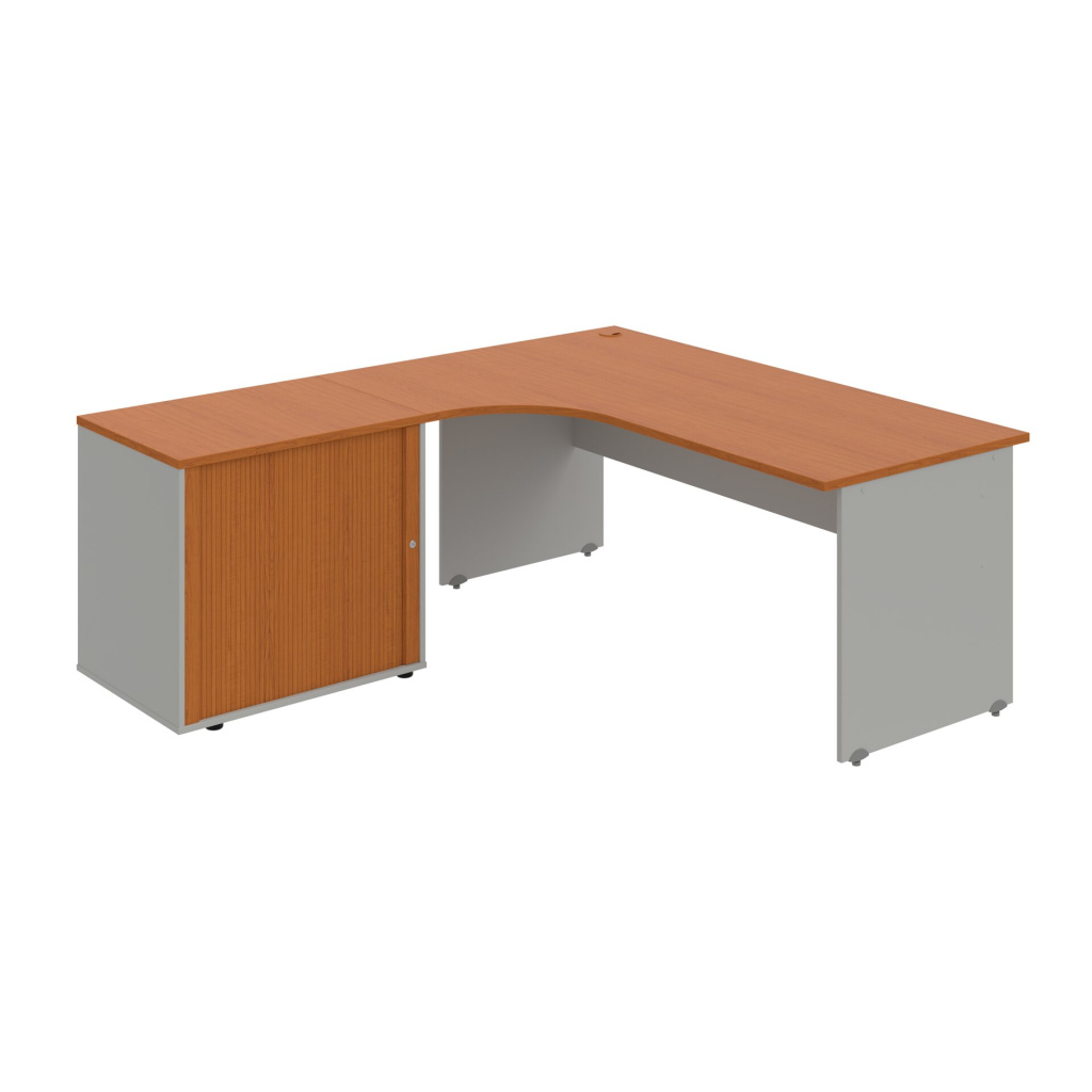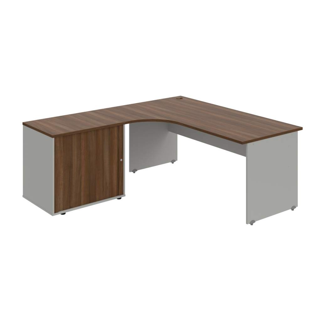 Stůl rohový pravý se skříňkou Hobis Gate GE 1800 60 H P, šířka 180 cm, výška 75,5 cm, hloubka 200 cm, nohy osazeny rektifikací. 1x kabelová průchodka, příchytky...