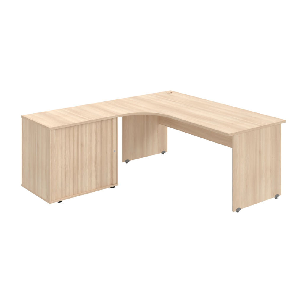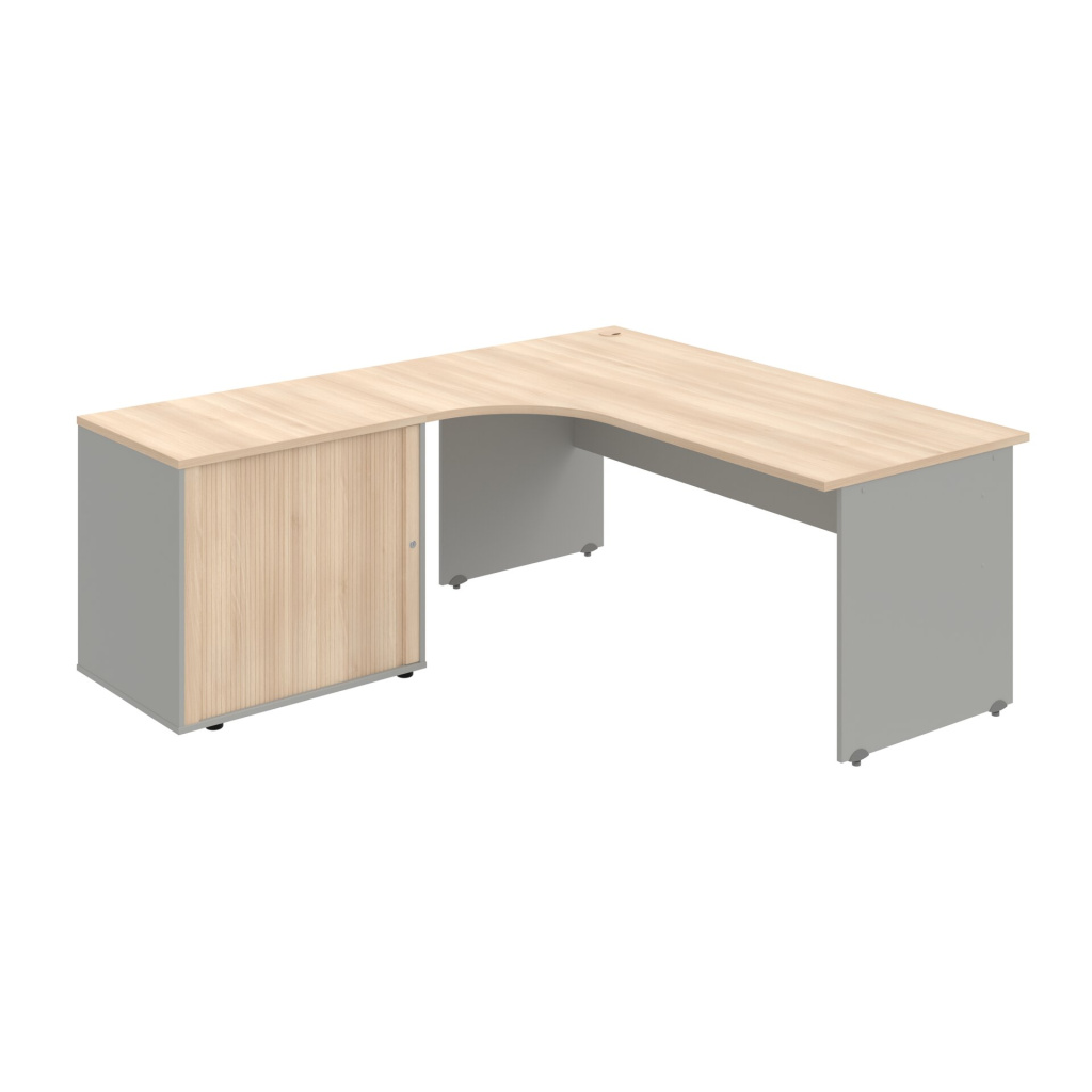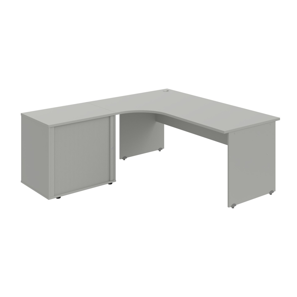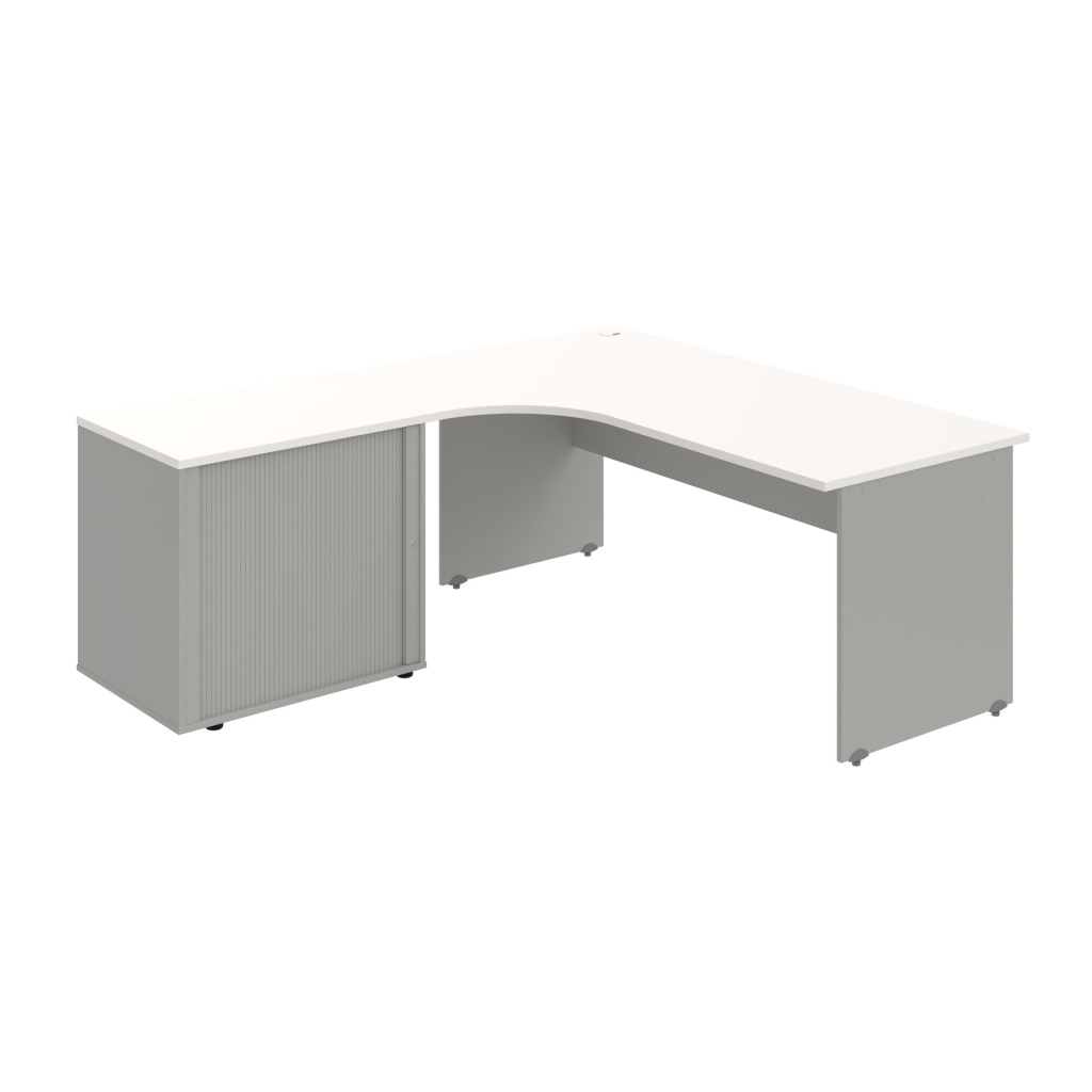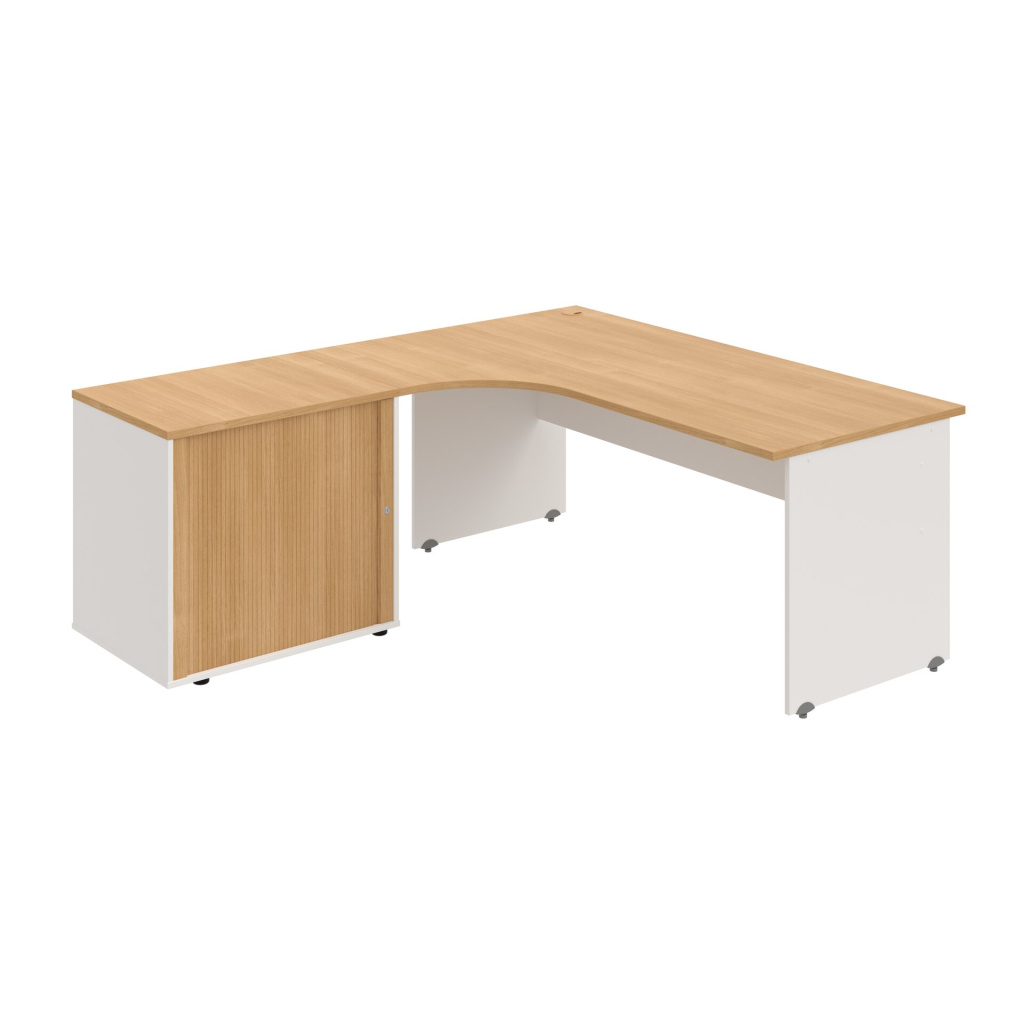 Stůl rohový pravý se skříňkou Hobis Gate GE 1800 60 H P, šířka 180 cm, výška 75,5 cm, hloubka 200 cm, nohy osazeny rektifikací. 1x kabelová průchodka, příchytky...