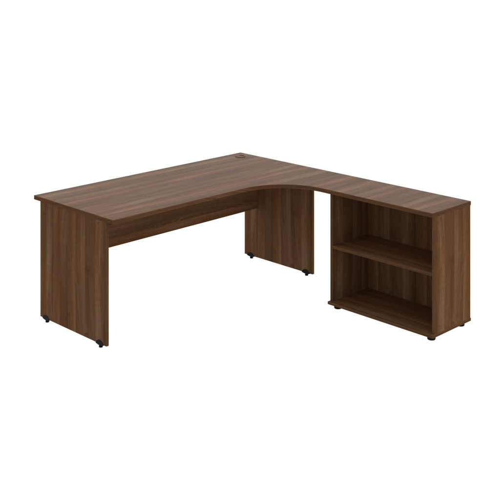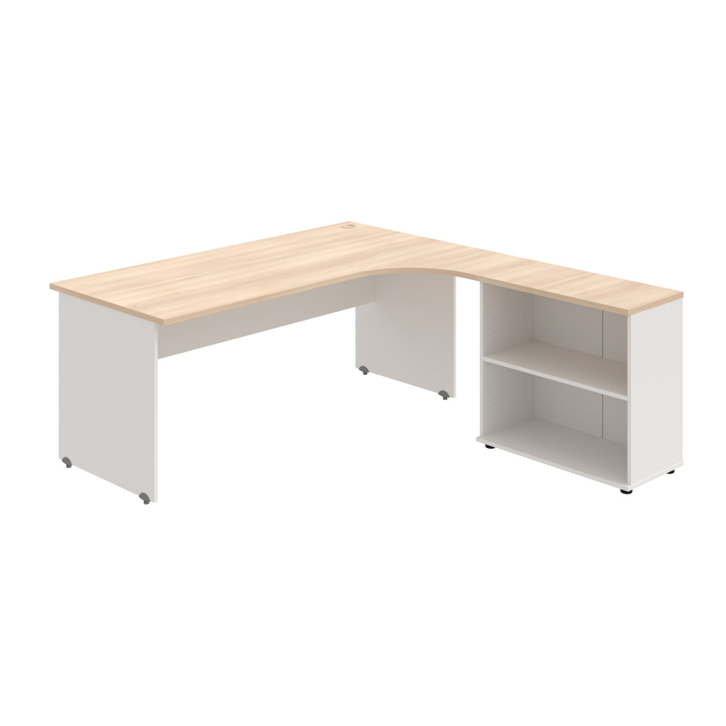 Stůl rohový pravý se skříňkou Hobis Gate GE 1800 60 H P, šířka 180 cm, výška 75,5 cm, hloubka 200 cm, nohy osazeny rektifikací. 1x kabelová průchodka, příchytky...