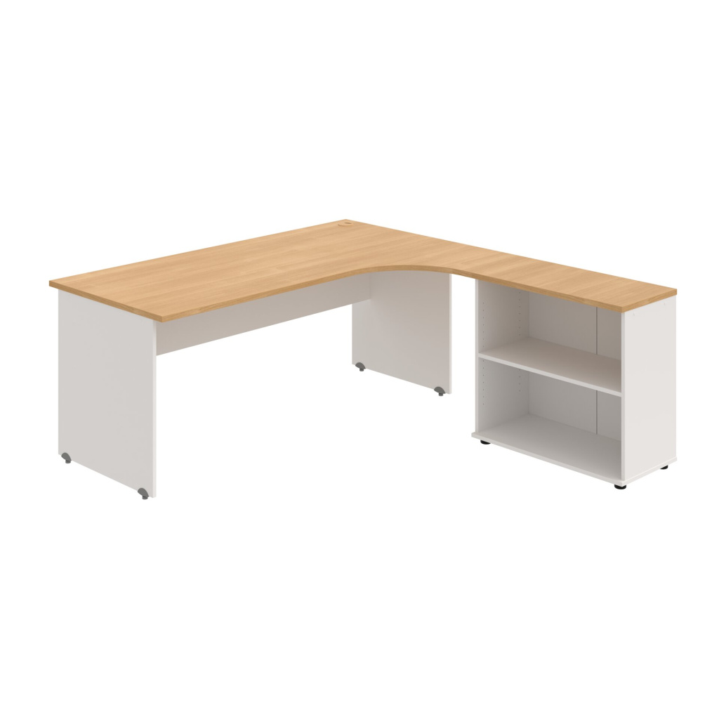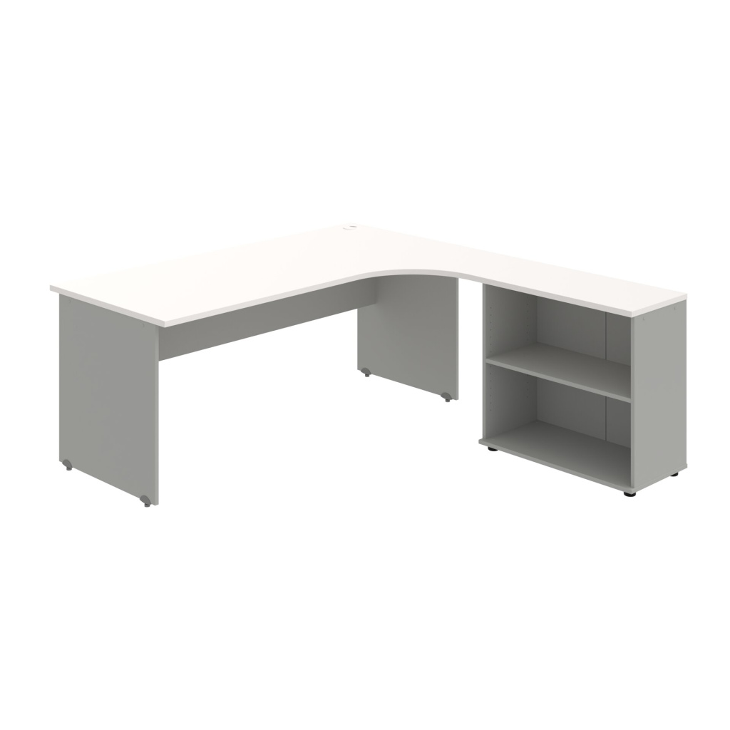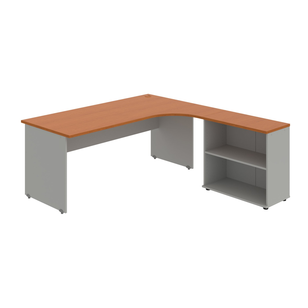 Stůl rohový pravý se skříňkou Hobis Gate GE 1800 60 HR P, šířka 180 cm, výška 75,5 cm, hloubka 200 cm, nohy osazeny rektifikací. 1x kabelová průchodka, příchytky...