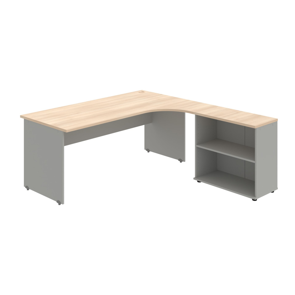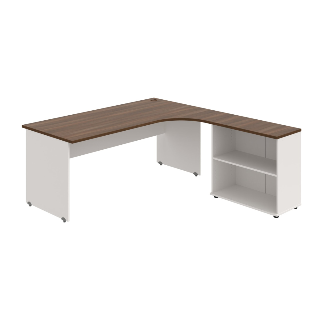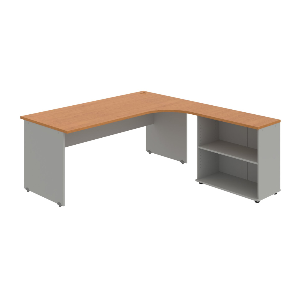 Stůl rohový pravý se skříňkou Hobis Gate GE 1800 60 HR P, šířka 180 cm, výška 75,5 cm, hloubka 200 cm, nohy osazeny rektifikací. 1x kabelová průchodka, příchytky...