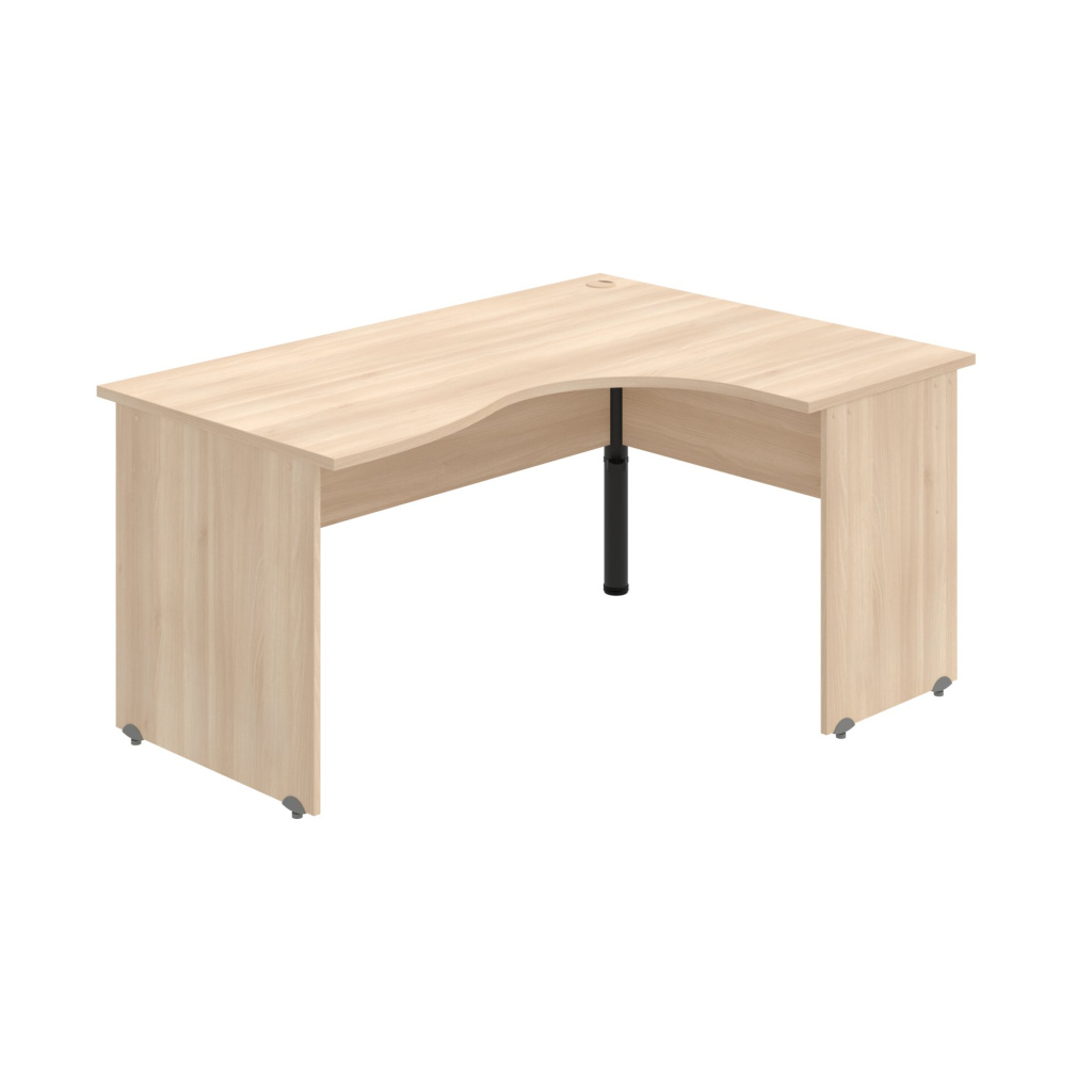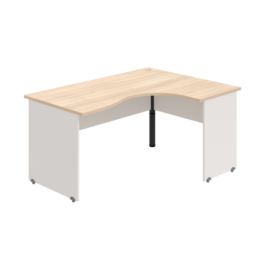 Pracovní deska stolu Hobis Gate GE 2005 L je vyrobena z kvalitní laminované dřevotřísky tloušťky 25 mm. Deska je po celém obvodě opatřena 2 mm silnou ABS hranou, která ji účinně chrání před mechanickým poškozením a opotřebením. Stolová deska se zespoda po celé délce podporována svislou deskou - trnoží, takže je možné desku rovnoměrně zatížit až na 100 kg.