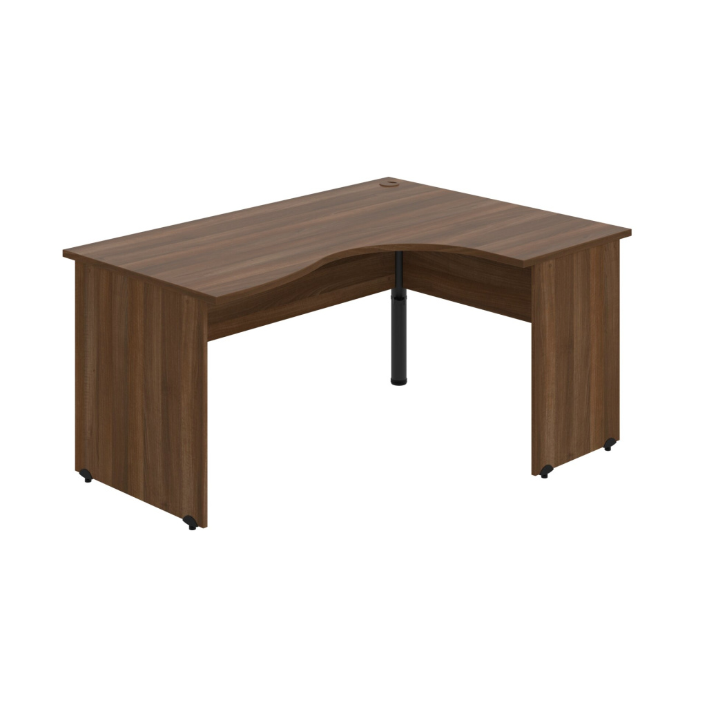Podnož kancelářského stolu Hobis GE 2005 L tvoří svislé desky tloušťky 18 mm spojené svislou příčkou - trnoží. Trnož má výšku 35 cm, částečně tak zakrývá nohy osoby sedící u stolu. Nohy jsou stejně jako pracovní deska chráněny 2mm ABS hranou. Nemáte ideálně rovnou podlahu? Nevadí. Nohy jsou vybaveny výškově stavitelnou rektifikací, která lze vyštroubovat až o 15 mm. Stůl si tak snadno vyladíte do perfektní roviny.