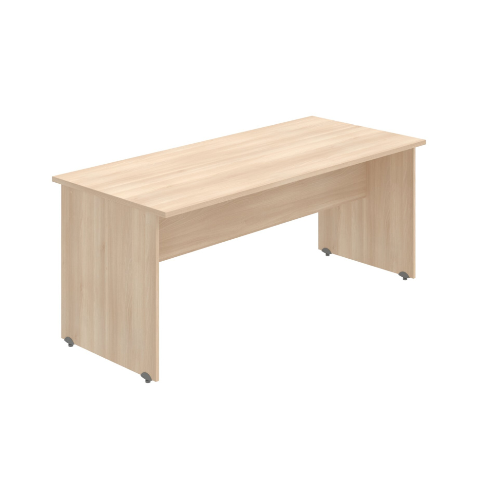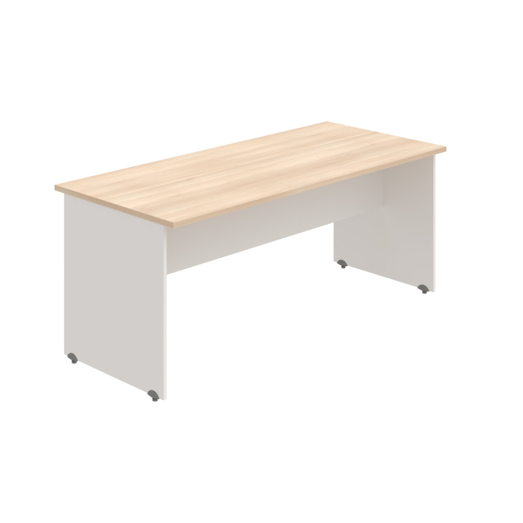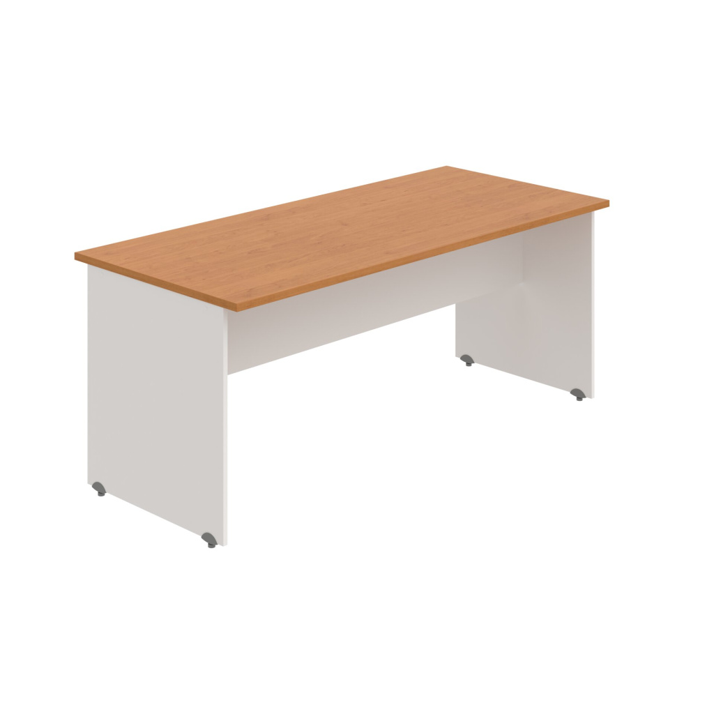 Pracovní deska stolu Hobis Gate GJ 1800 je vyrobena z kvalitní laminované dřevotřísky tloušťky 25 mm. Deska je po celém obvodě opatřena 2 mm silnou ABS hranou, která ji účinně chrání před mechanickým poškozením a opotřebením. Stolová deska se zespoda po celé délce podporována svislou deskou - trnoží, takže je možné desku rovnoměrně zatížit až na 100 kg.