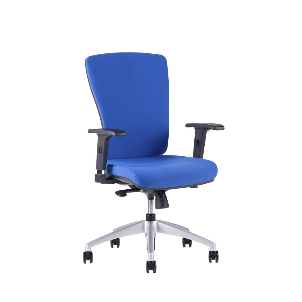 Hlavní předností židle Halia je variabilita provedení. V nabídce je varianta s čalouněným opěrákem, nebo alternativa s opěrákem potaženým samonosnou síťovinou. V jedné kanceláři tak můžete vyhovět ruzným požadavkům na řešení opěráku při zachování stejného vzhledu. Tato verze židle Halia BP je bez hlavové opěrky, avšak v naší nabídce je i verze s nastavitelnou hlavovou opěrkou.