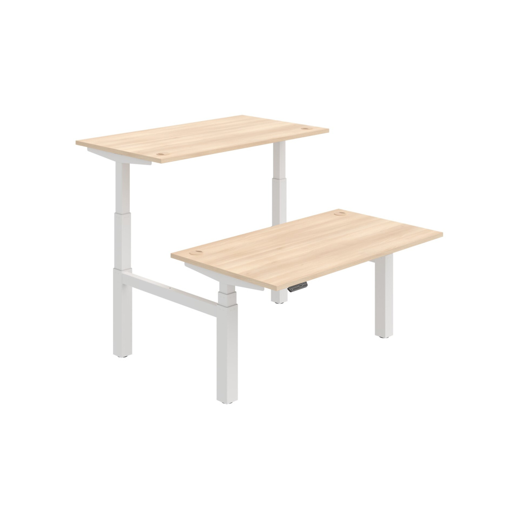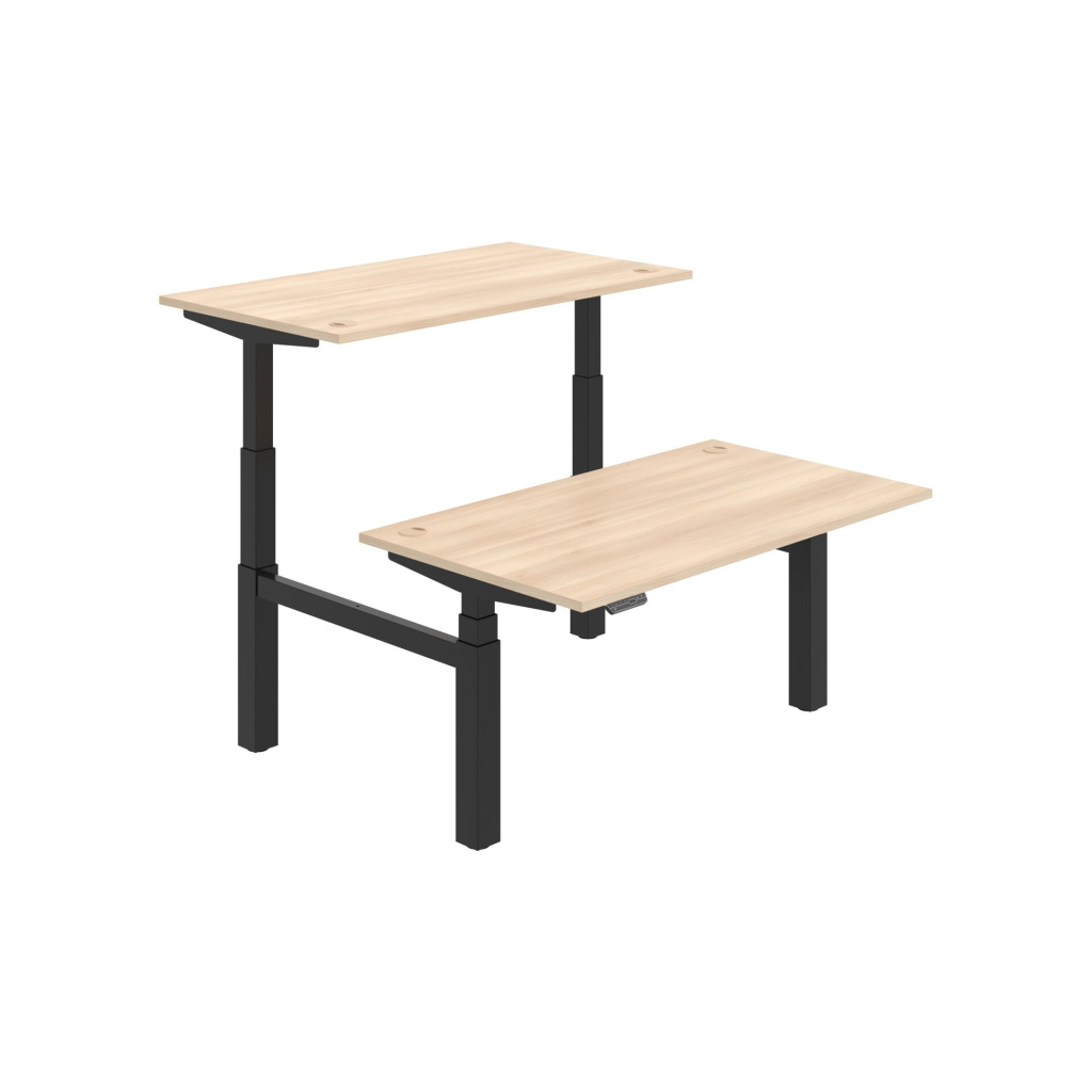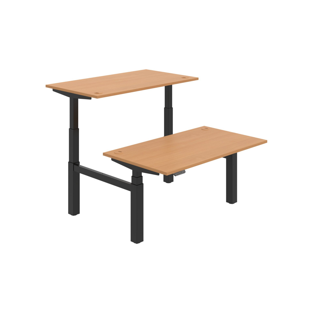 Pracovní deska elektricky výškově stavitelného stolu Hobis Motion Dual MSD 3M 1400 je vyrobena z kvalitní laminované dřevotřísky tloušťky 25 mm. Deska je po celém obvodě opatřena 2 mm silnou ABS hranou, která ji účinně chrání před mechanickým poškozením a opotřebením. Stolová deska je zespoda po celé délce podporována kovovým nosníkem, takže je možné desku rovnoměrně zatížit až na 100 kg.