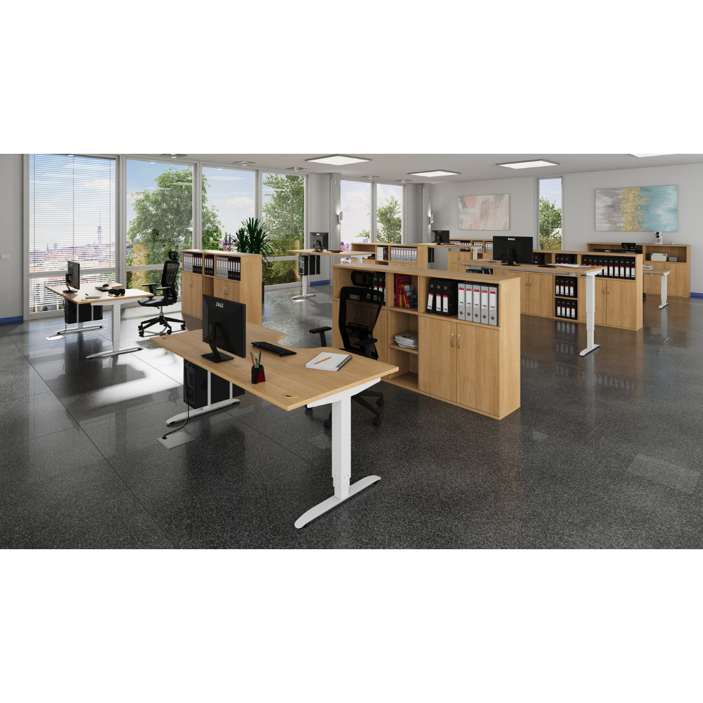 Pracovní deska elektricky výškově stavitelného stolu Hobis Motion Dual MSD 3M 1800 je vyrobena z kvalitní laminované dřevotřísky tloušťky 25 mm. Deska je po celém obvodě opatřena 2 mm silnou ABS hranou, která ji účinně chrání před mechanickým poškozením a opotřebením. Stolová deska je zespoda po celé délce podporována kovovým nosníkem, takže je možné desku rovnoměrně zatížit až na 100 kg.