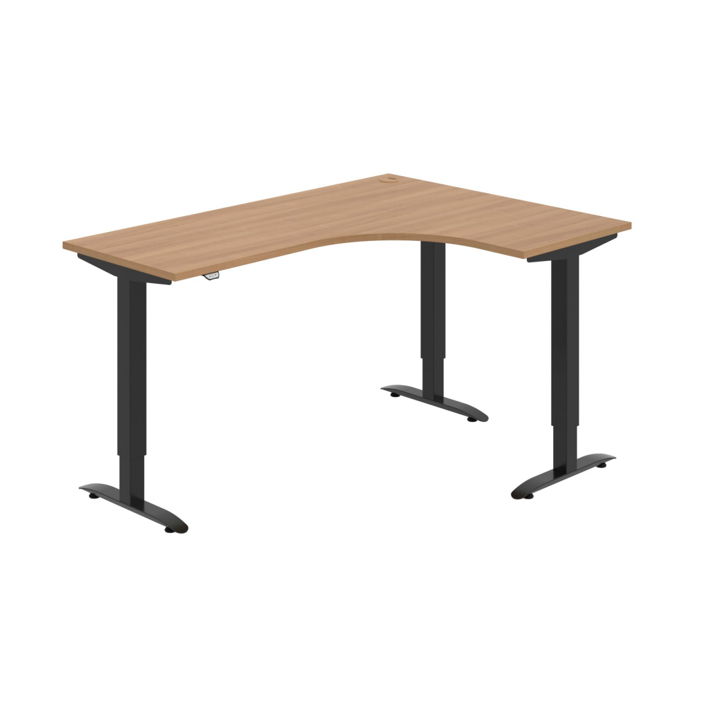 Pracovní deska elektricky výškově stavitelného stolu Hobis Motion Trigon MST 2 60 L je vyrobena z kvalitní laminované dřevotřísky tloušťky 25 mm. Deska je po celém obvodě opatřena 2 mm silnou ABS hranou, která ji účinně chrání před mechanickým poškozením a opotřebením. Stolová deska je zespoda po celé délce podporována kovovým nosníkem, takže je možné desku rovnoměrně zatížit až na 120 kg.