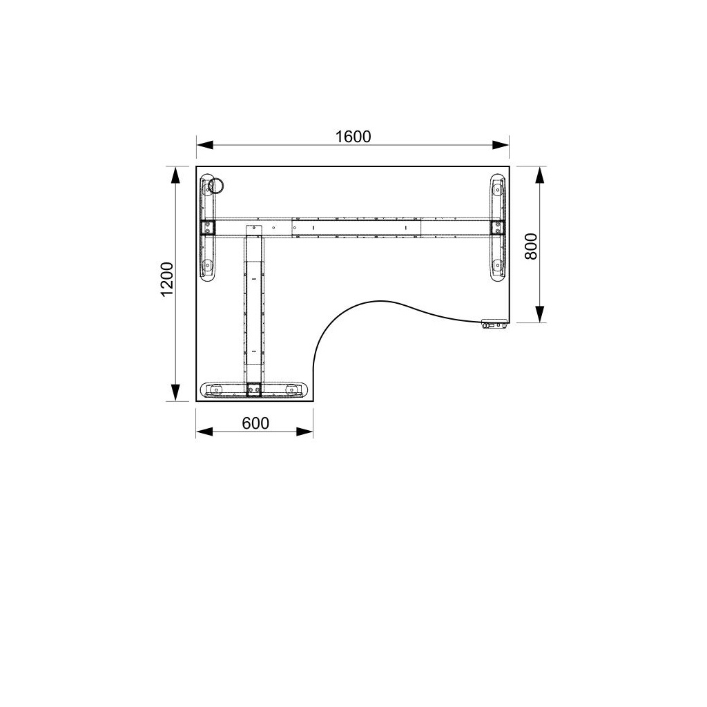 Pracovní deska elektricky výškově stavitelného stolu Hobis Motion Trigon MST 2M 2005 P je vyrobena z kvalitní laminované dřevotřísky tloušťky 25 mm. Deska je po celém obvodě opatřena 2 mm silnou ABS hranou, která ji účinně chrání před mechanickým poškozením a opotřebením. Stolová deska je zespoda po celé délce podporována kovovým nosníkem, takže je možné desku rovnoměrně zatížit až na 120 kg.