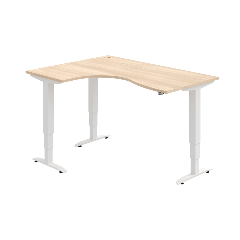 Pracovní deska elektricky výškově stavitelného stolu Hobis Motion Trigon MST 3 2005 P je vyrobena z kvalitní laminované dřevotřísky tloušťky 25 mm. Deska je po celém obvodě opatřena 2 mm silnou ABS hranou, která ji účinně chrání před mechanickým poškozením a opotřebením. Stolová deska je zespoda po celé délce podporována kovovým nosníkem, takže je možné desku rovnoměrně zatížit až na 120 kg.