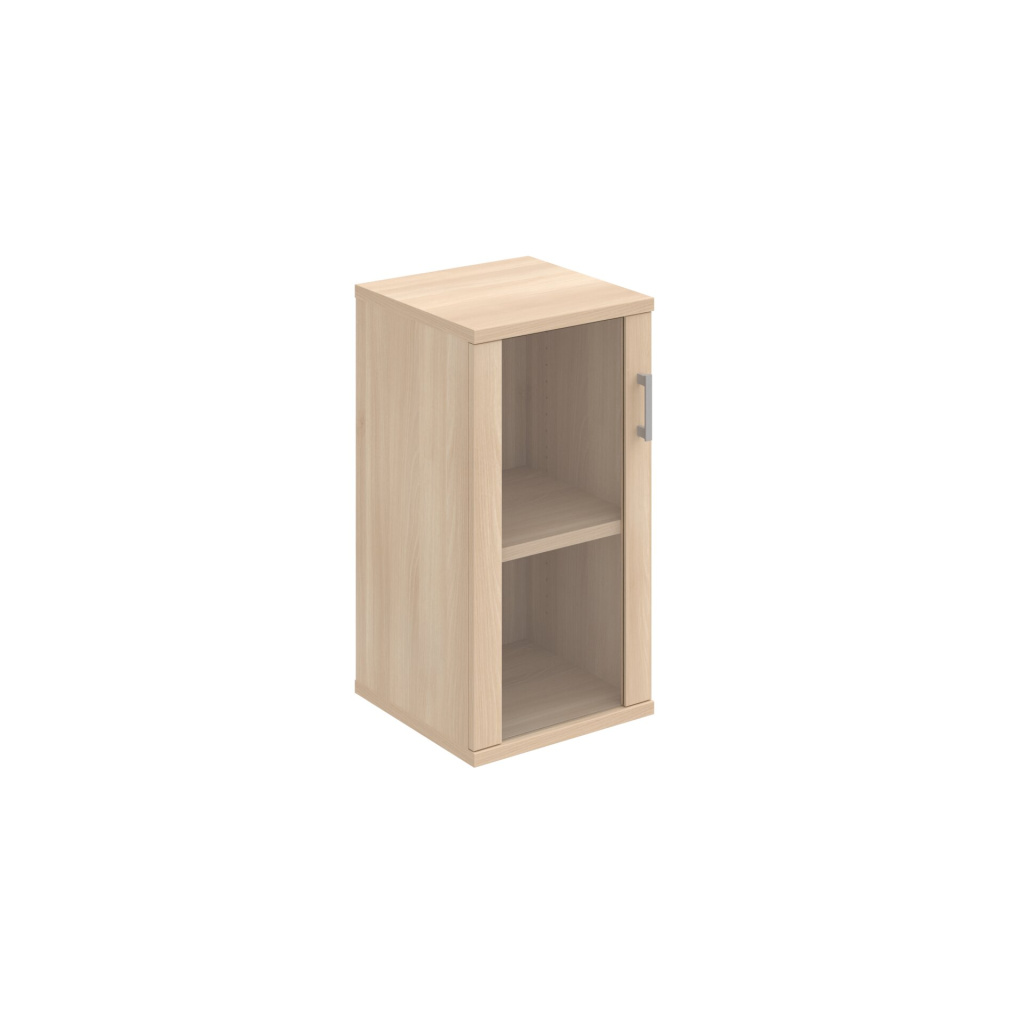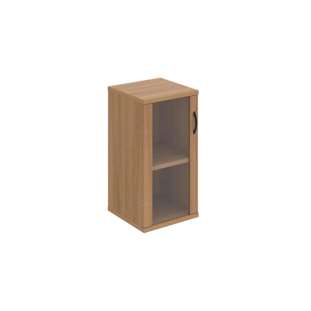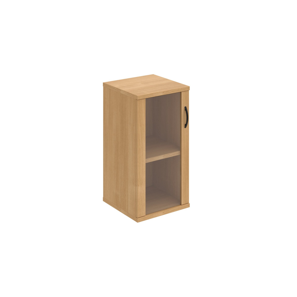 Skříň Hobis Strong S 2 40 02 L je uzavíratelná částečně prosklenými dveřmi. Tato dvířka umožňují vidět obsah skříně a zároveň nabízejí vyšší odolnost než dvířka celoskleněná. Dveře jsou opatřeny 2mm ABS hranou, která je chrání před mechanickým poškozením. Tiché a plynulé zavírání je zajištěno díky použití kvalitního kování Blum s tlumiči dorazu a doživotní zárukou.