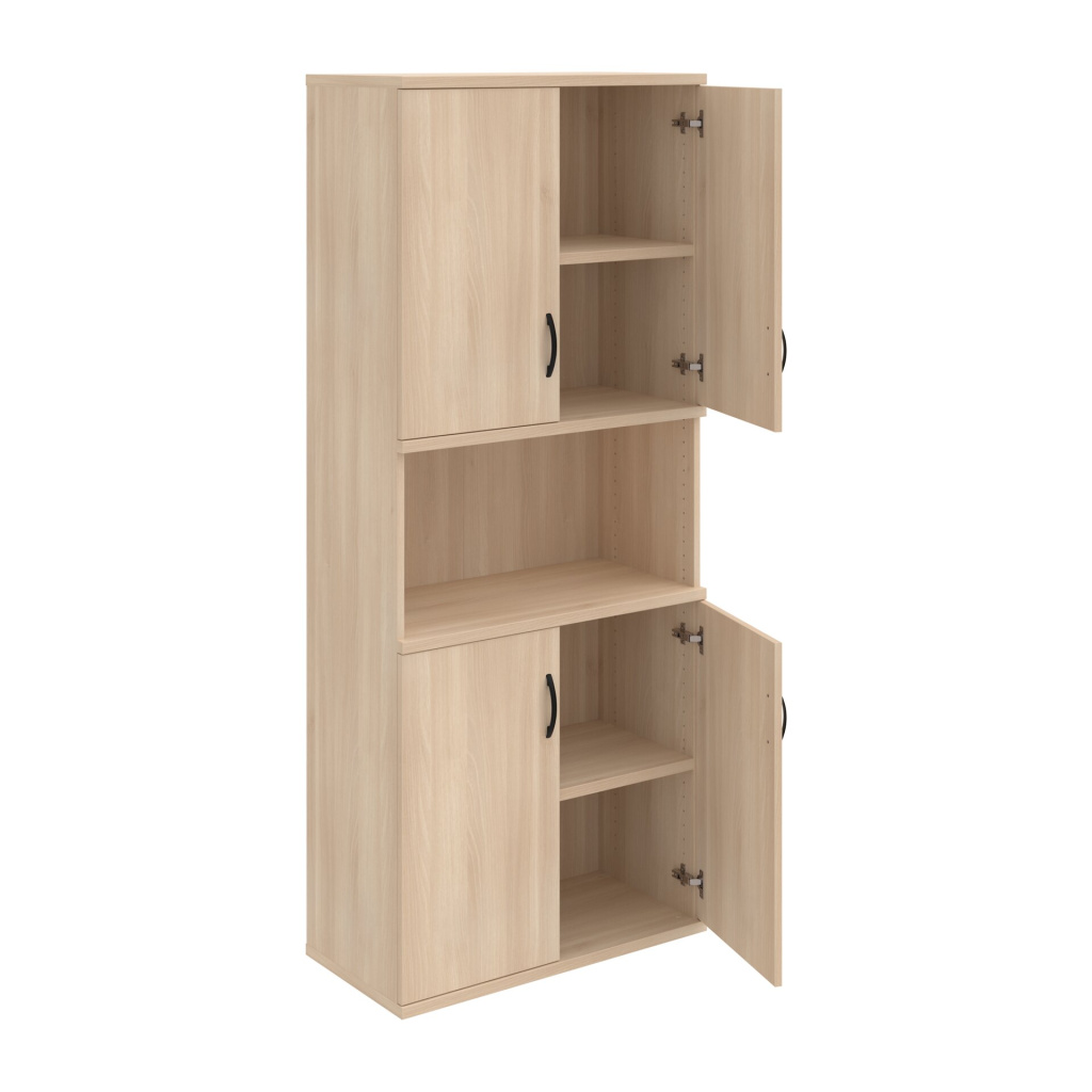Skříň Hobis Strong S 5 80 05 je vybavena policemi s nadstandardní tloušťkou 25 mm a jejich čelo je chráněno 2mm ABS hranou (kromě skříní délky 120 cm, které mají police kovové). Každou polici tak můžete rovnoměrně zatížit hmostností až 80 kg. Vysoká nosnost není dána pouze sílou materiálu ale i kováním, které zajišťuje pevné spojení mezi policí a korpusem a zabraňuje i náhodnému vysunutí police. Základní výška úložného prostoru mezi policemi je přizpůsobena na výšku standardního kancelářského šanonu. V případě potřeby lze jednoduše polohu polic změnit dle individuálních potřeb. Pokud vám standardní počet polic nestačí, je možné další police dokoupit. Tyto a další doplňky naleznete v kategorii Příslušenství a doplňky