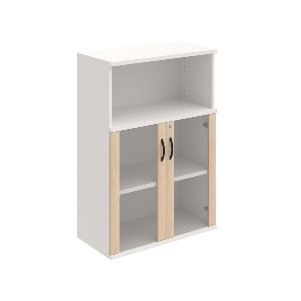 Skříň Hobis Strong SZ 3 80 05 je uzavíratelná částečně prosklenými dveřmi. Tato dvířka umožňují vidět obsah skříně a zároveň nabízejí vyšší odolnost než dvířka celoskleněná. Dveře jsou opatřeny 2mm ABS hranou, která je chrání před mechanickým poškozením. Tiché a plynulé zavírání je zajištěno díky použití kvalitního kování Blum s tlumiči dorazu a doživotní zárukou.