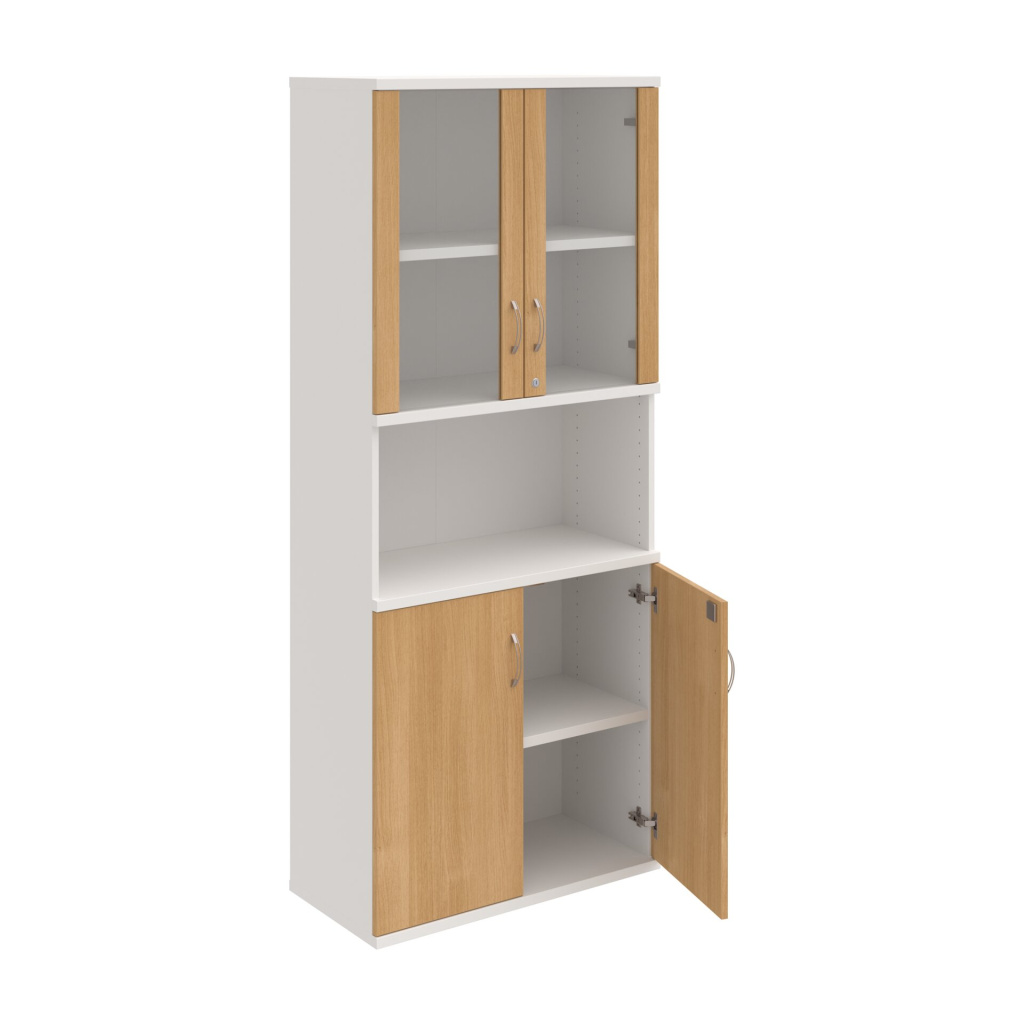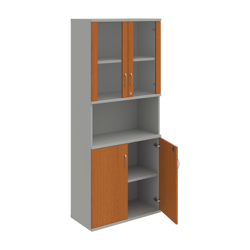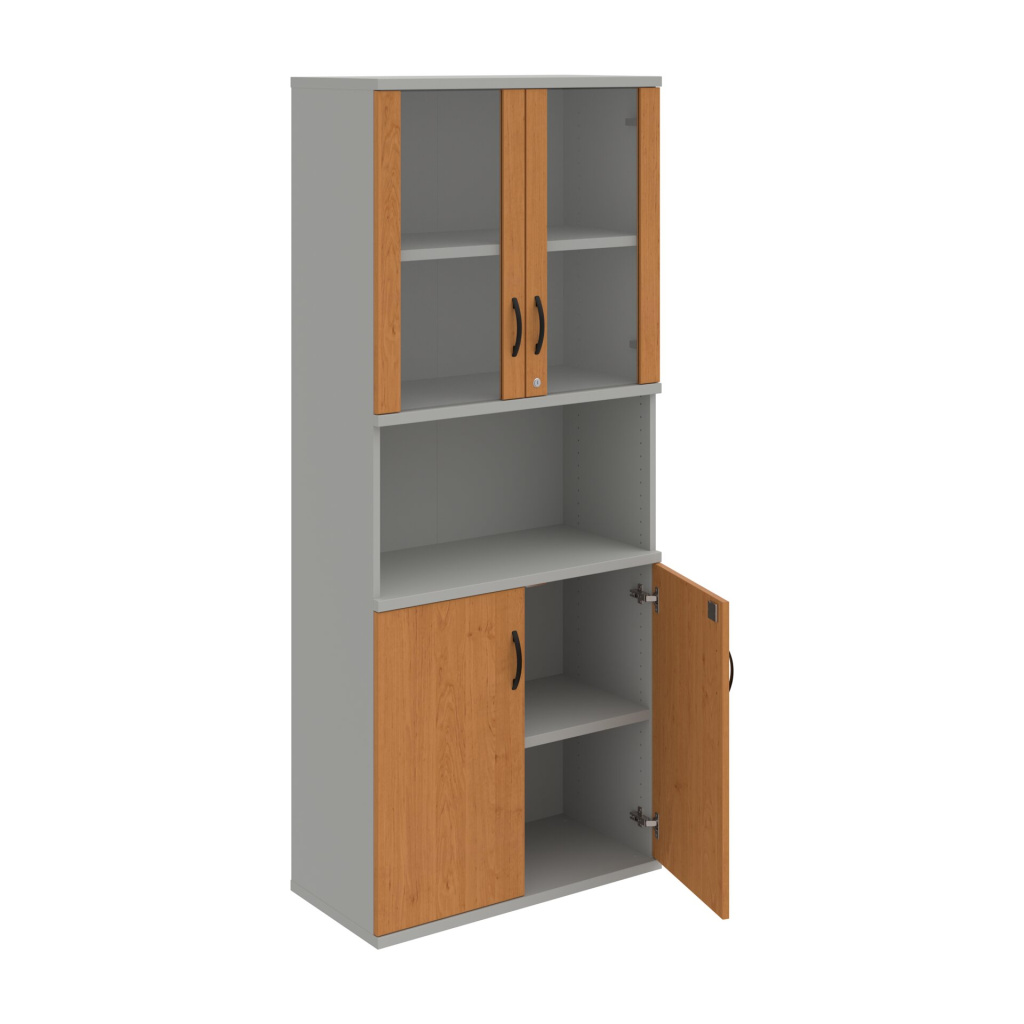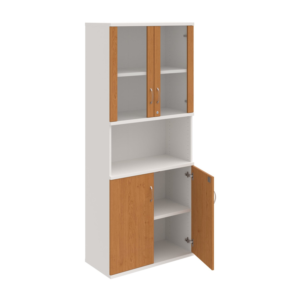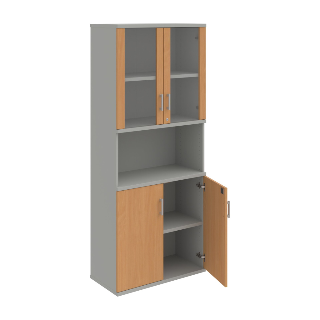Skříň Hobis Strong SZ 5 80 07 je uzavíratelná plnými a částečně prosklenými dveřmi. Dveře jsou po obvodě opatřeny 2mm ABS hranou, která je chrání před mechanickým poškozením. Tiché a plynulé zavírání je zajištěno díky použití kvalitního kování Blum s tlumiči dorazu a doživotní zárukou.