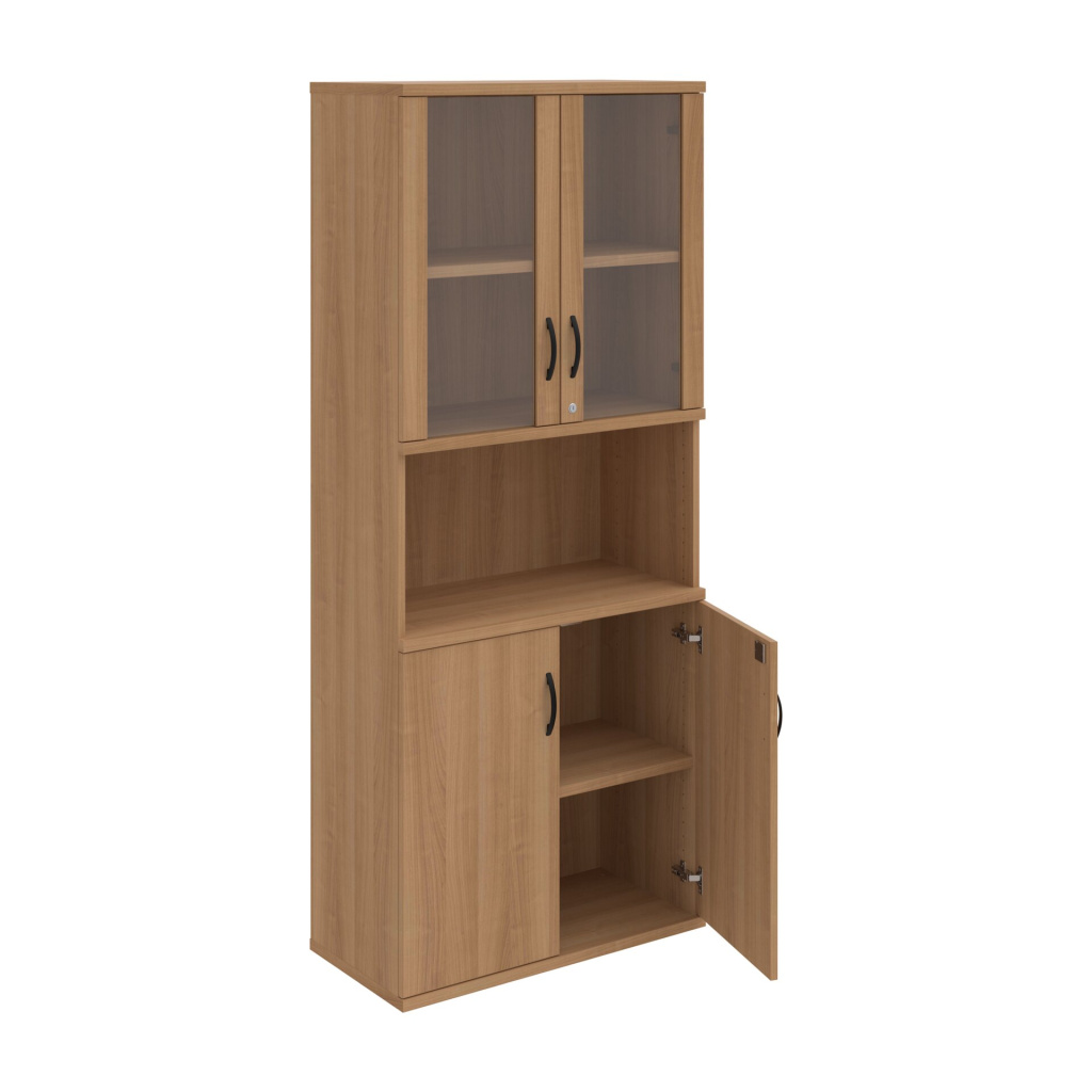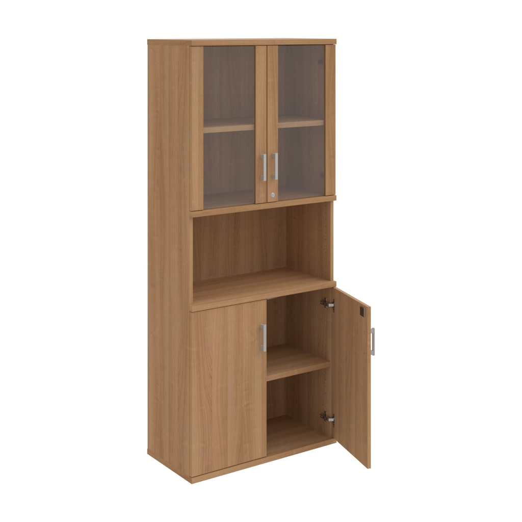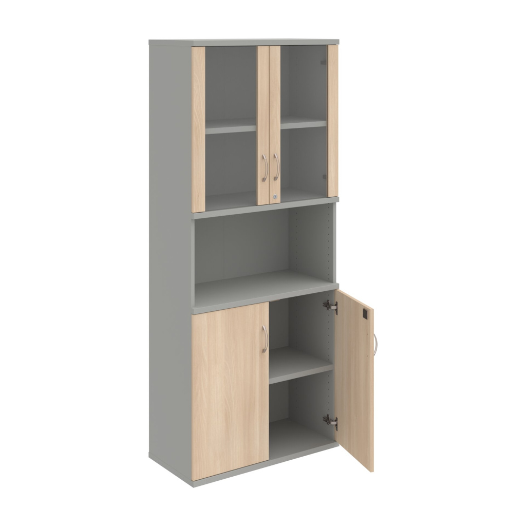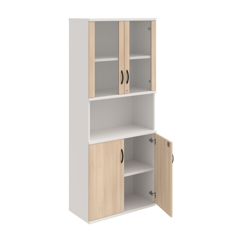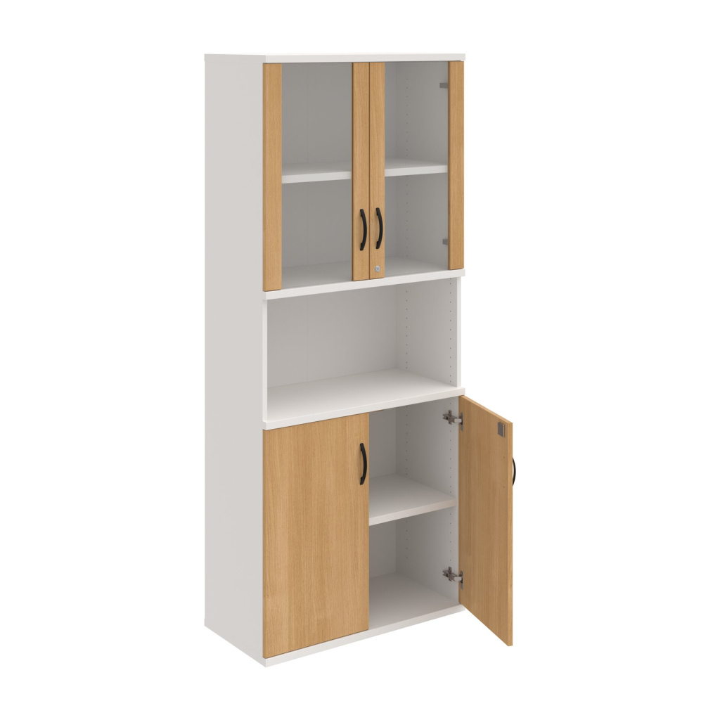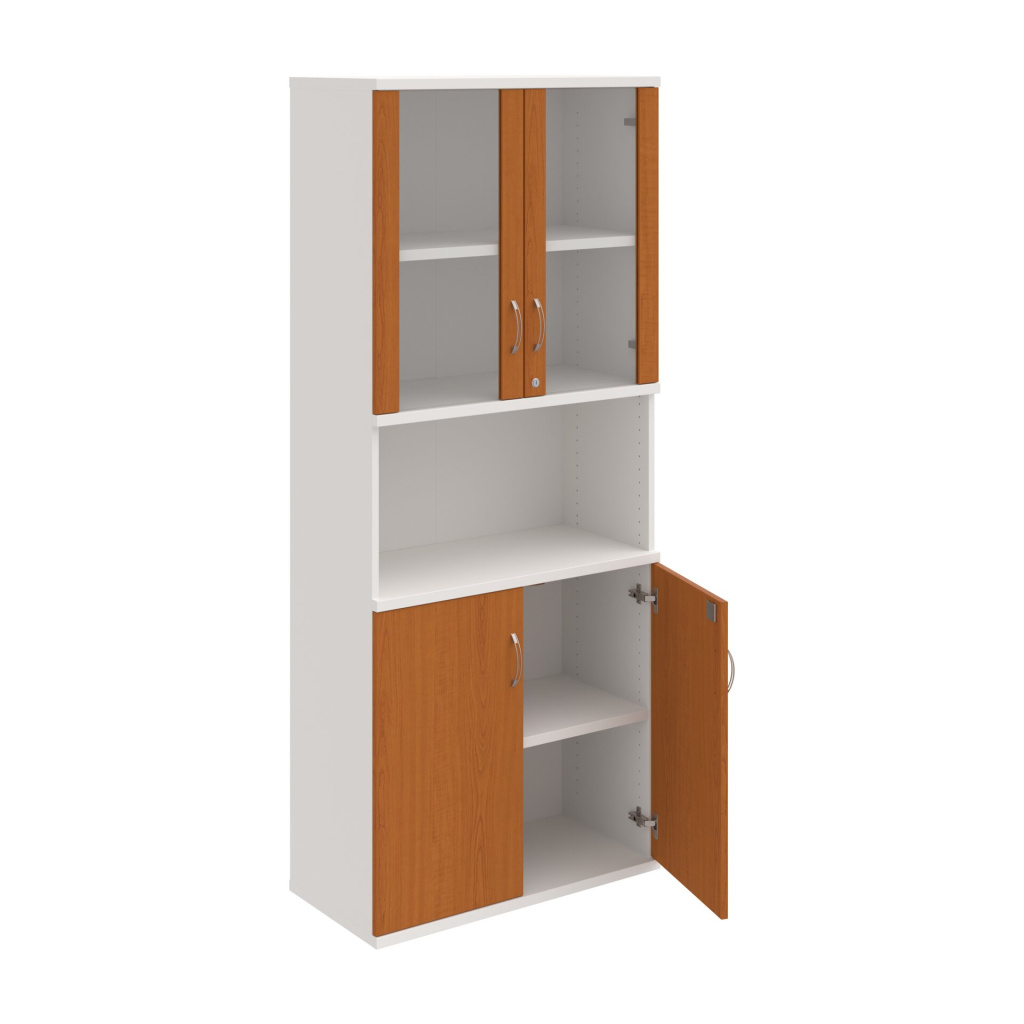 Skříň Hobis Strong SZ 5 80 07 je uzavíratelná plnými a částečně prosklenými dveřmi. Dveře jsou po obvodě opatřeny 2mm ABS hranou, která je chrání před mechanickým poškozením. Tiché a plynulé zavírání je zajištěno díky použití kvalitního kování Blum s tlumiči dorazu a doživotní zárukou.