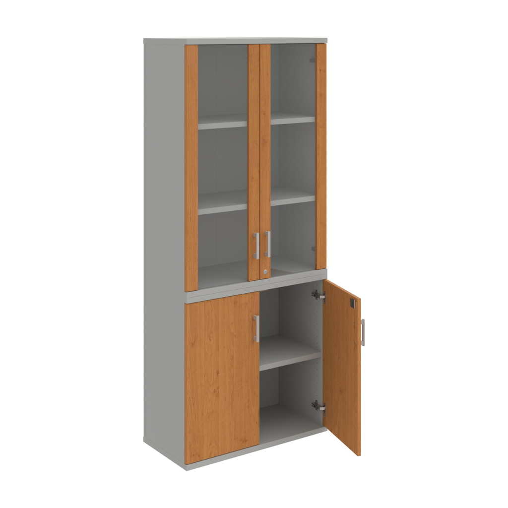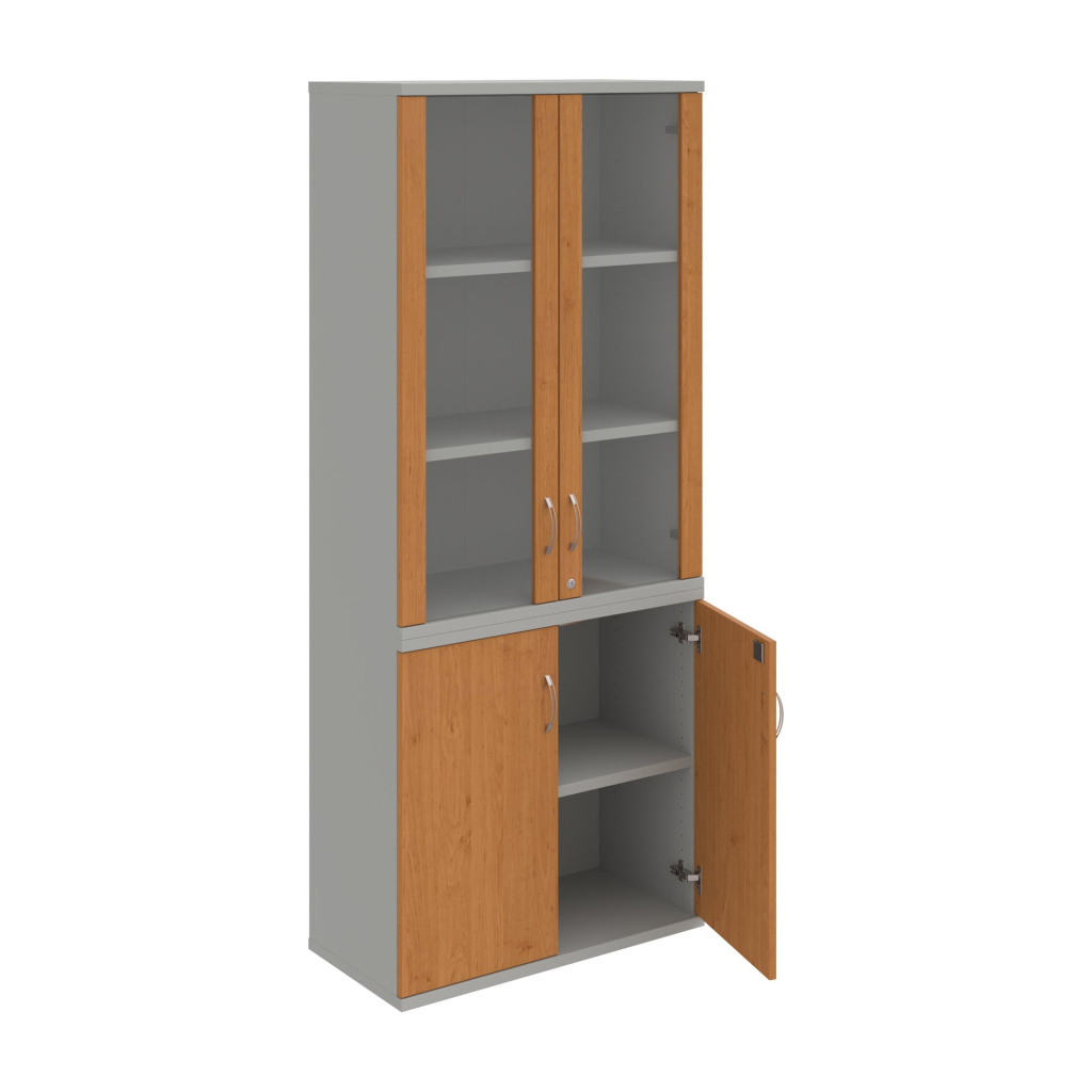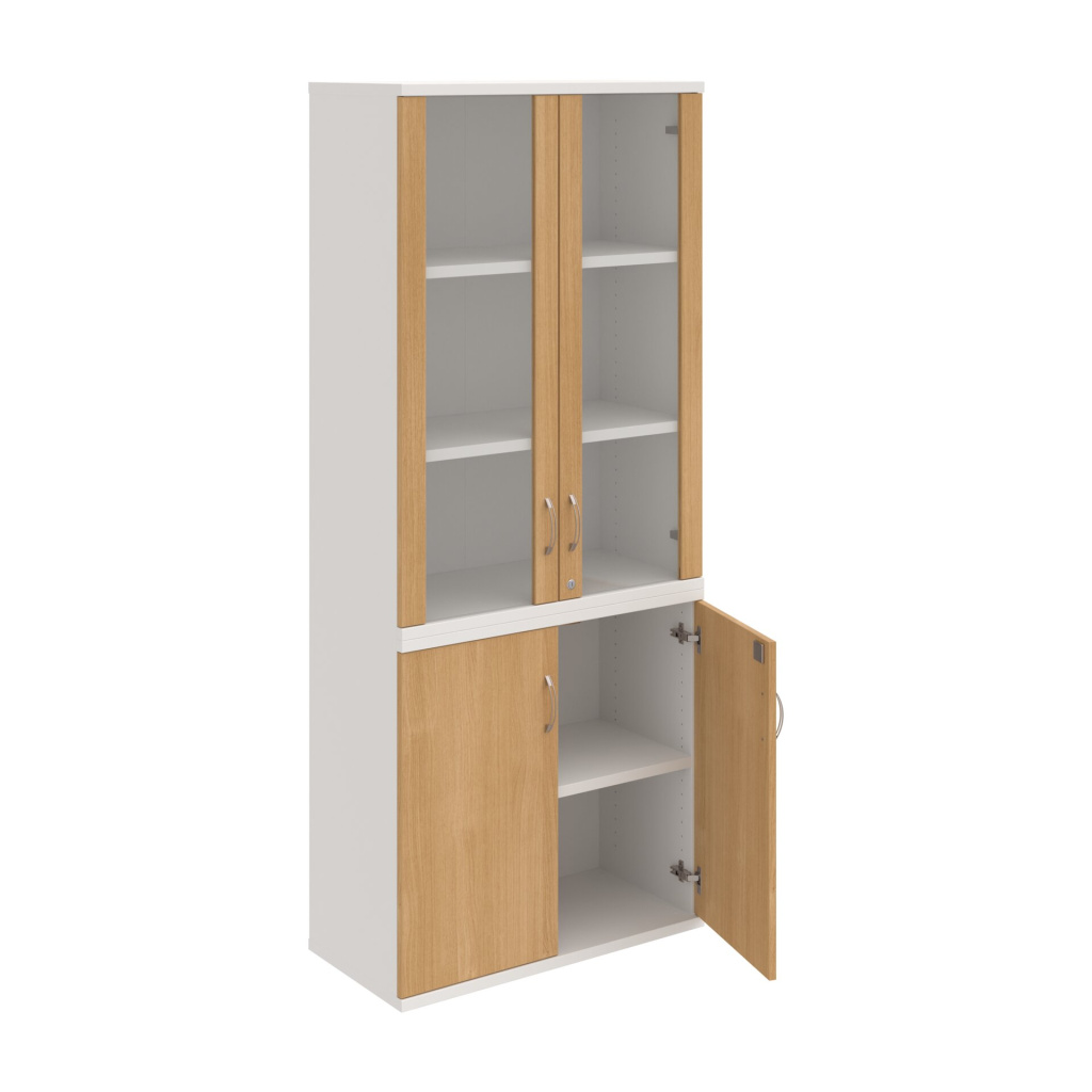 Skříň Hobis Strong SZ 5 80 09 je uzavíratelná plnými a částečně prosklenými dveřmi. Dveře jsou po obvodě opatřeny 2mm ABS hranou, která je chrání před mechanickým poškozením. Tiché a plynulé zavírání je zajištěno díky použití kvalitního kování Blum s tlumiči dorazu a doživotní zárukou.