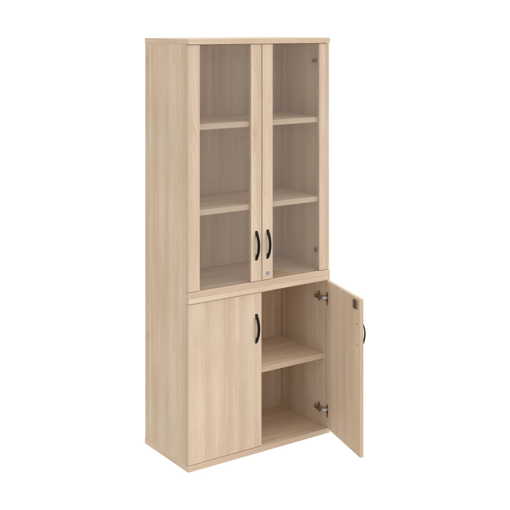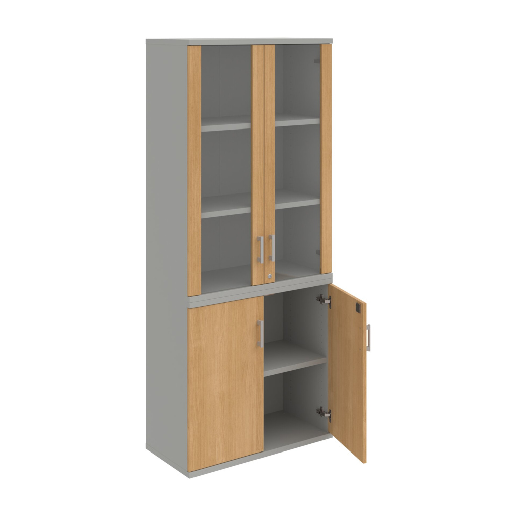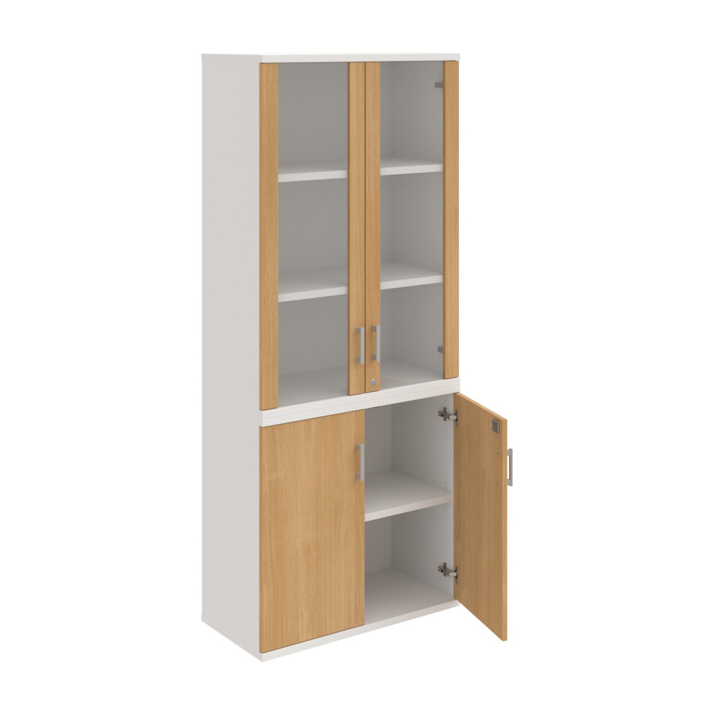Skříň Hobis Strong SZ 5 80 09 je uzavíratelná plnými a částečně prosklenými dveřmi. Dveře jsou po obvodě opatřeny 2mm ABS hranou, která je chrání před mechanickým poškozením. Tiché a plynulé zavírání je zajištěno díky použití kvalitního kování Blum s tlumiči dorazu a doživotní zárukou.