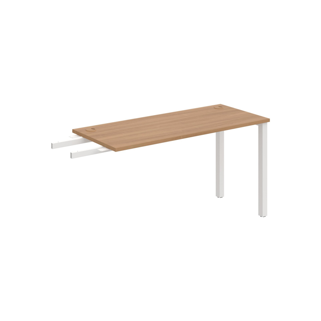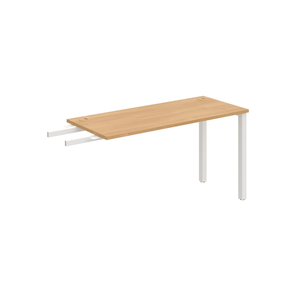 Pracovní deska stolu Hobis UNI UE 1400 RU je vyrobena z kvalitní laminované dřevotřísky tloušťky 25 mm. Deska je po celém obvodě opatřena 2 mm silnou ABS hranou, která ji účinně chrání před mechanickým poškozením a opotřebením. Stolová deska je zespoda po celé délce podporována kovovými spojovacími profily - luby, takže je možné desku rovnoměrně zatížit až na 100 kg.