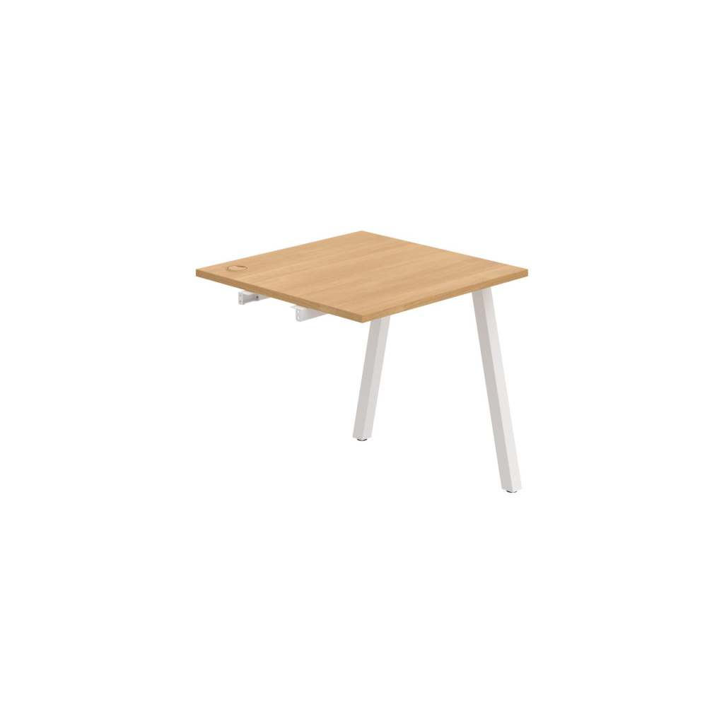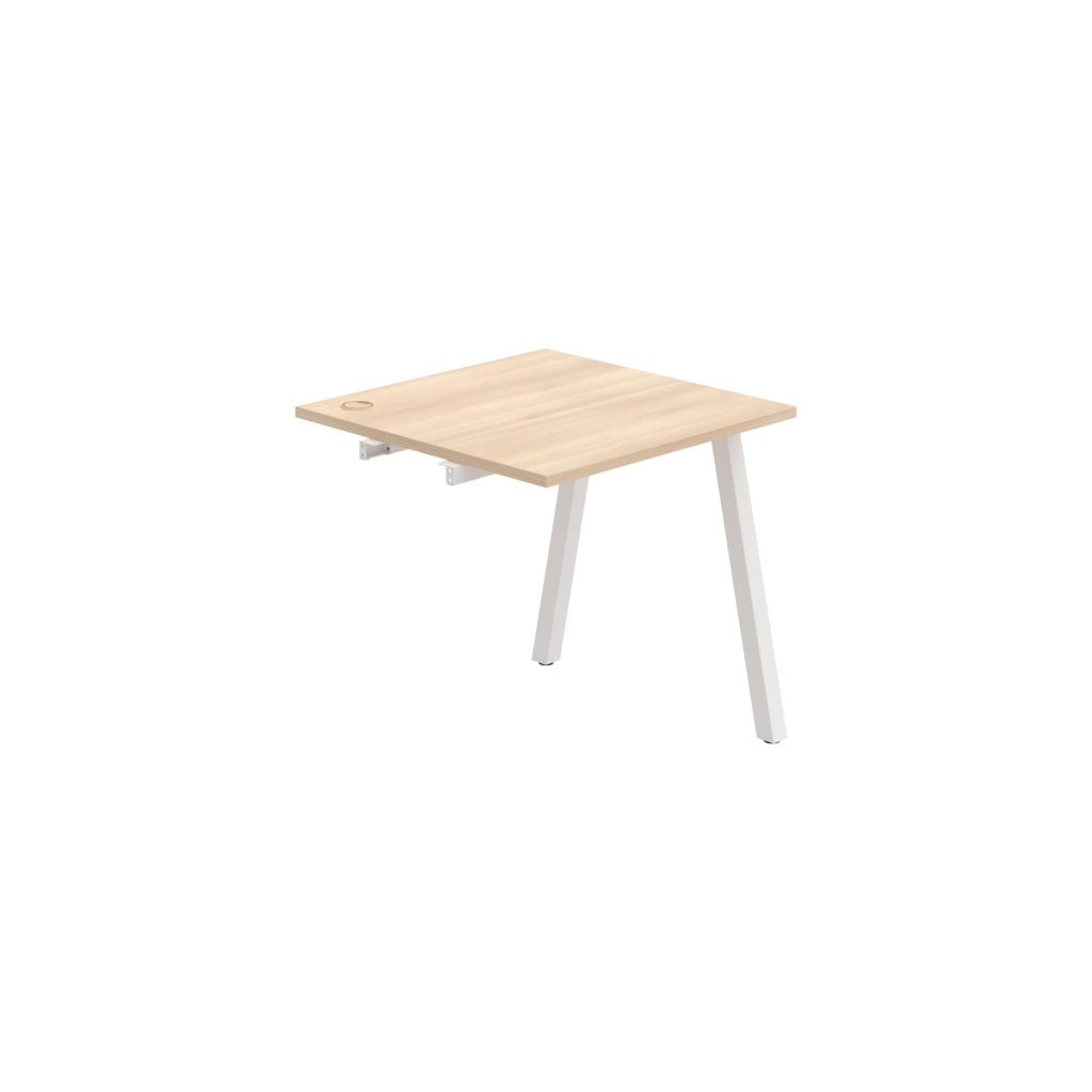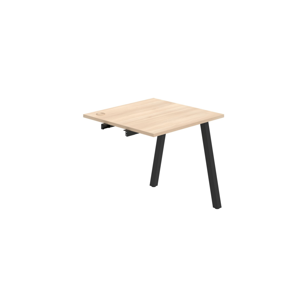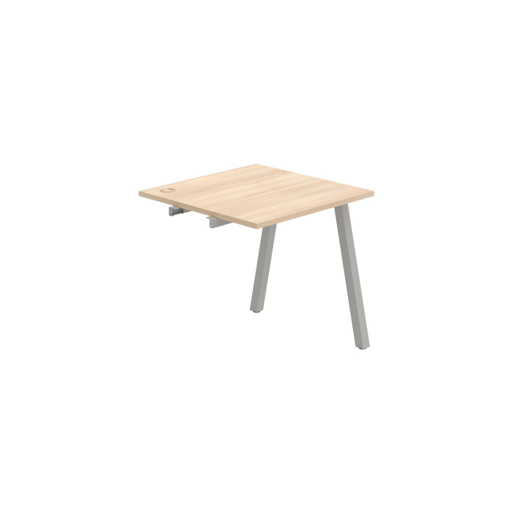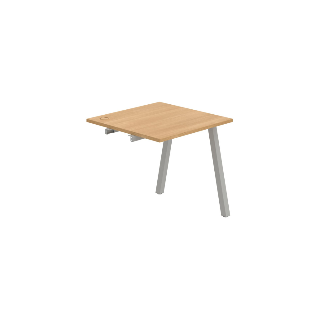 Pracovní deska stolu Hobis UNI US A 800 R je vyrobena z kvalitní laminované dřevotřísky tloušťky 25 mm. Deska je po celém obvodě opatřena 2 mm silnou ABS hranou, která ji účinně chrání před mechanickým poškozením a opotřebením. Stolová deska je zespoda po celé délce podporována kovovými spojovacími profily - luby, takže je možné desku rovnoměrně zatížit až na 100 kg.